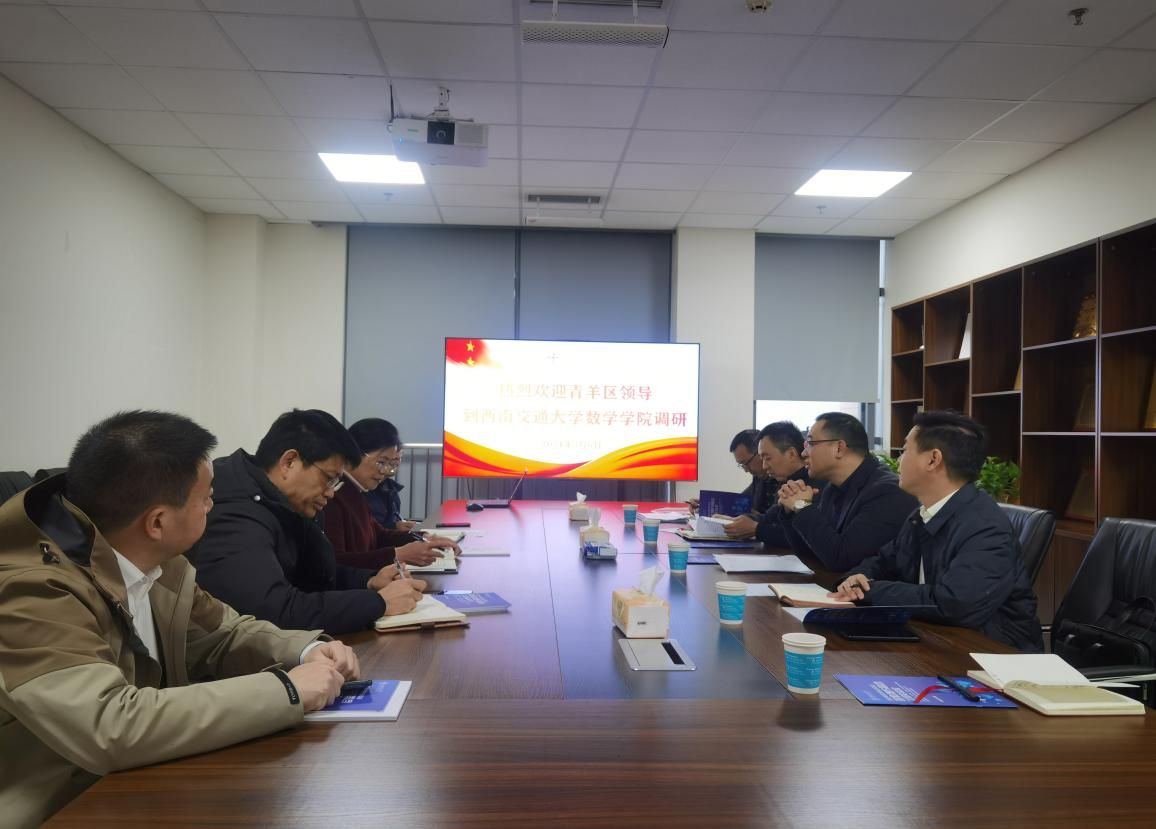 3月6日上午,青羊区府南街道办书记韩宇、府南街道办机关党委书记刘永川、营商办主任李科、赋能兴川研究院书记、董事长杨国荣一行赴太阳集团tcy8722考察交流,数学公司党委书记徐革、副书记黄祥、副经理王璐和李志辉参加了调研交流会。
