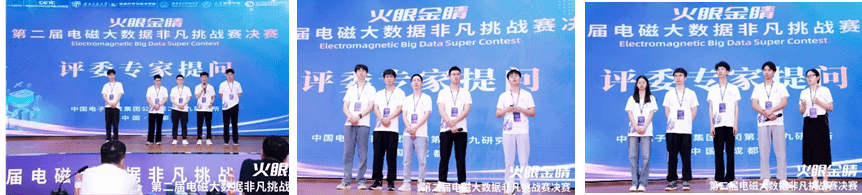 在选手答辩环节,12支团队按照赛前抽签顺序依次上台展示。每支队伍都展现出他们在电磁大数据领域的独特研究成果与创新思维,答辩过程既紧张又激动人心。选手们逻辑严谨、表达流畅、充满自信,以创新性的模型设计、精确的实验结果,深入浅出的算法讲解,充分展现出了团队的最佳风采。