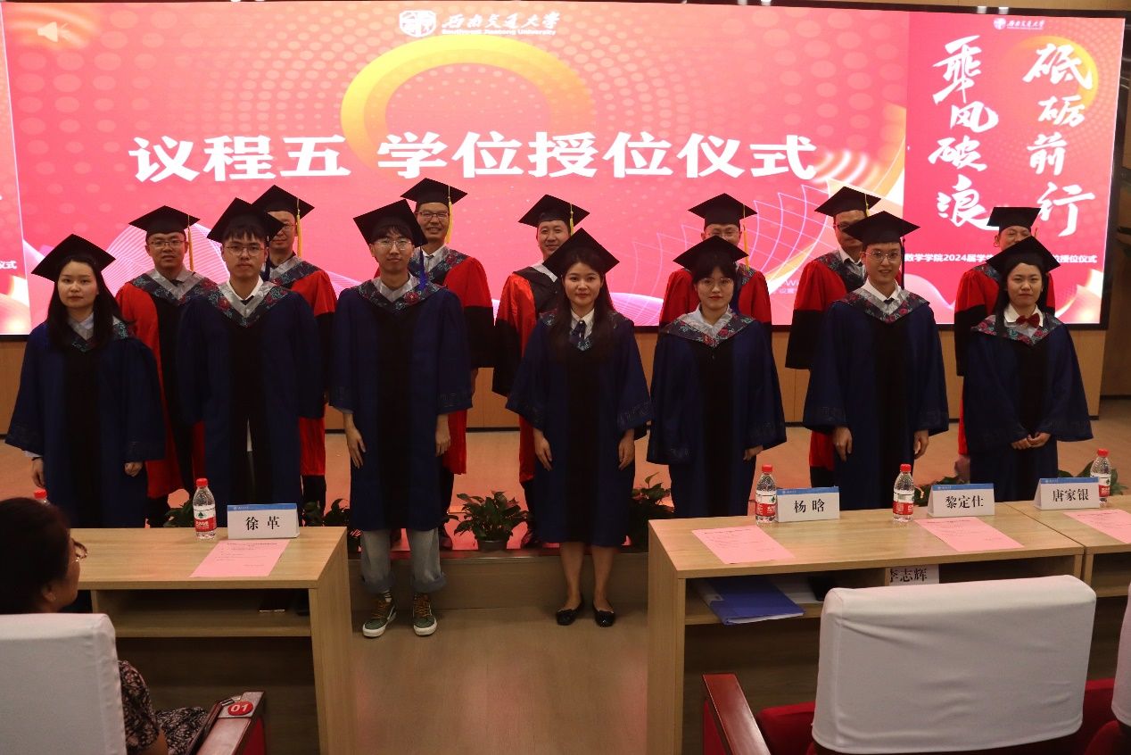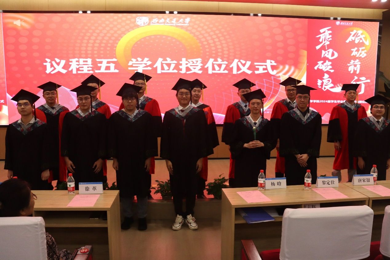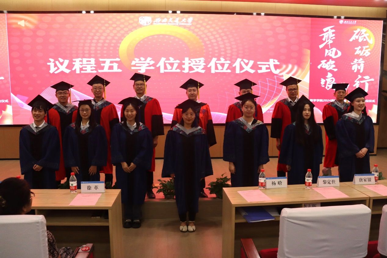 典礼第四项,学位授位仪式。由太阳集团tcy8722学术分委会导师为毕业生逐个授学位礼并合影留念。
