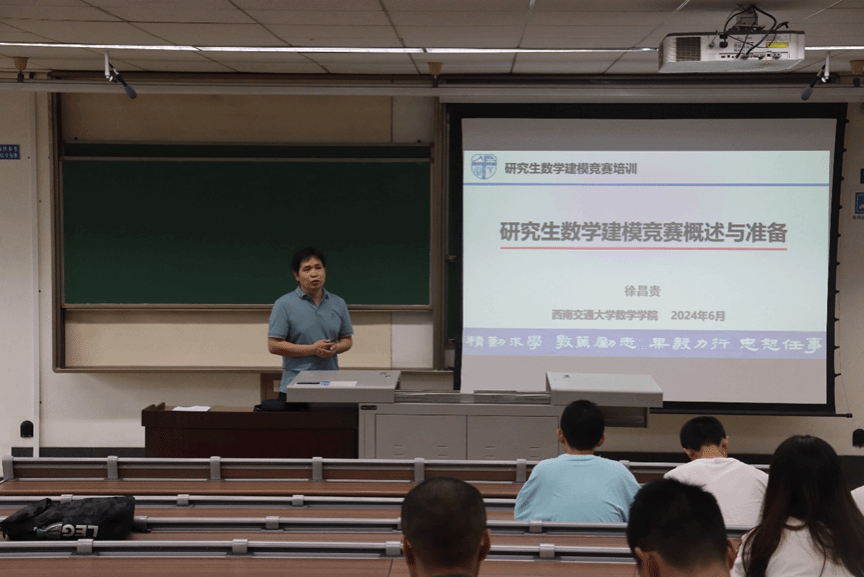 培训开始,徐昌贵老师围绕“研究生数学建模竞赛概述与准备”这一主题,向同学们介绍了赛事的由来及竞赛的时间表与报名流程等基本内容,帮助同学们对研究生数学建模竞赛进行初步了解,同时,他根据近年该竞赛赛题提出了培训建议,引导员工们找对方向,做好充足的赛前准备,并在数学建模竞赛的资料参考方面向大家进行了推荐与解惑,为同学们在研究生新阶段下,面对新高度的数学建模竞赛提供了基本的指导。