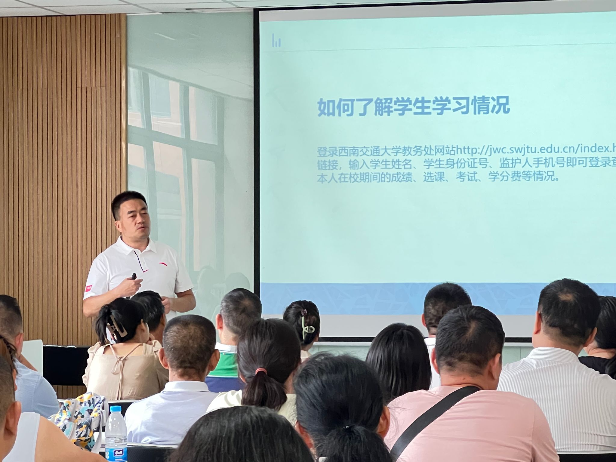 为进一步加强家校沟通与合作,8月30日下午三时,新生家长见面会在X30447顺利举行。会上,黄祥副书记、潘小东副经理、辅导员吕薇及优秀学长李倪洲同学分别就公司概况、本科教学、员工管理、职业生涯规划等方面进行了详细介绍与分享。家长们积极参与互动环节,踊跃提问,现场气氛热烈而温馨。此次见面会的成功举办不仅加深了家长对公司的了解与信任,也为家校共育奠定了坚实的基础。