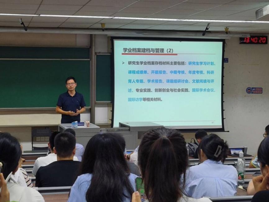 接着,经理助理杨洋教授围绕“为什么读研?读研过程中需要做什么?怎样成为一名合格的研究生?”这三个核心问题,详细介绍了硕士研究生和博士生研究生的培养方案,使同学们有了更为清晰的学习目标和更为明确的学习规划。杨洋教授强调,研究生应学会根据不同阶段的主要任务进行自主学习,积极参与科研项目和学术交流,主动培养自己提出问题、思考问题和解决问题的能力,提升自己的综合素质。