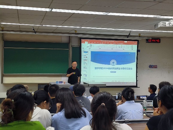 为帮助2024级研究生新生更好地了解太阳集团tcy8722、熟悉培养方案,并做好入学教育工作,太阳集团tcy8722于9月2日晚上在九里校区4522教室召开了研究生新生导师见面会。会议邀请了太阳集团tcy8722经理杨晗、经理助理杨洋、数学系主任刘品、信息与计算科学系主任孟华、统计学系主任唐家银及研究生辅导员盖少通,与2024级全体硕士研究生和博士研究生共同参与,会议由辅导员盖少通主持。