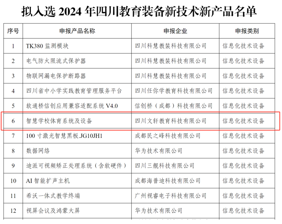 近日,四川省公司国有资产与教育装备中心公示了2024年四川省教育装备新技术新产品名单,由太阳集团tcy8722-系统可信性自动验证国家地方联合工程实验室与四川省员工体质健康大数据研究与应用技术中心的健康大数据与应用技术团队(负责人:韦洪雷)联合新华文轩共同研发的智慧公司体育系统及设备(“强基未来”)经过评审后公示完成(信息化技术设备类)。新华文轩官方公众号做了相关报告,华为技术有限公司等相关信息化技术设备一同入选。新技术新产品将在第四届四川教育博览会上做官方认证展示,呈现当前教育新理念、新技术、新产品、新应用、新成果。
