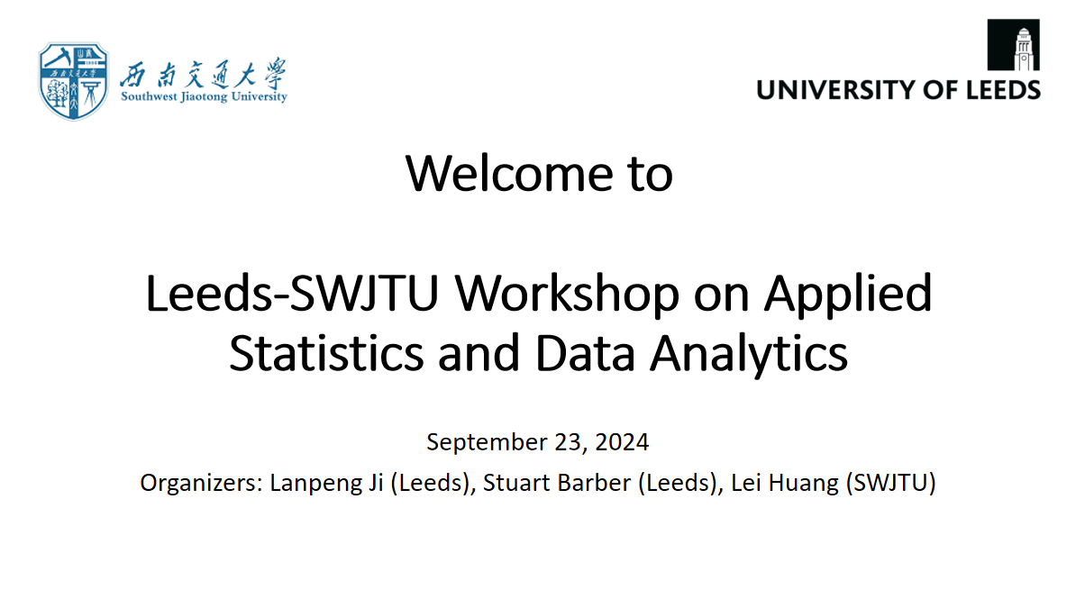 2024年9月23日晚上19点至22点,英国利兹大学(University of Leeds)-太阳集团tcy8722应用统计与数据分析研讨会在Zoom会议平台线上举行。来自利兹大学太阳集团tcy8722统计系、健康科学研究所、运输研究所,和太阳集团tcy8722统计系、数据科学系以及交通运输公司共计37位老师和两校部分硕博士研究生参加了本次研讨会。研讨会议由利兹大学太阳集团tcy8722的Lanpeng Ji,Stuart Barber和太阳集团tcy8722的黄磊老师联合主持。