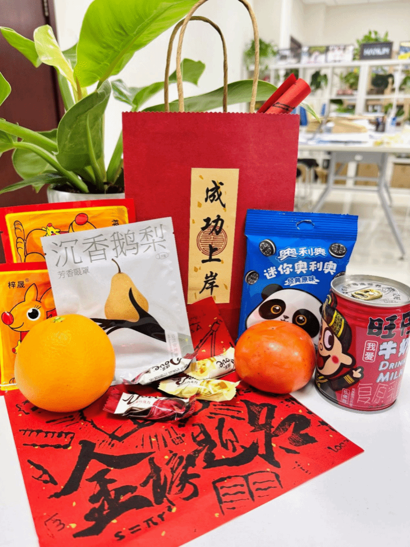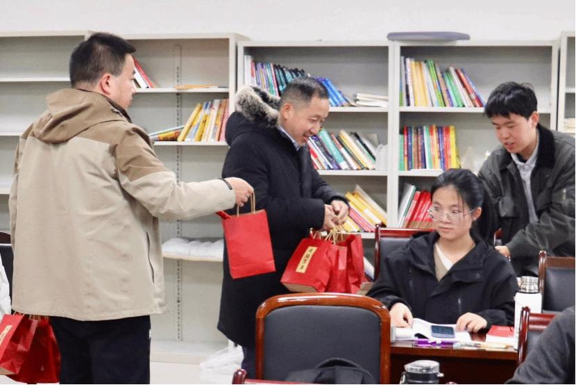 随后,杨晗经理,黄祥副书记,潘小东副经理向大家分发了精心准备的慰问礼包,同学们深受感动与激励,他们也将满载着公司的祝福与期许,以更坚定的信念和更饱满的热情去迎接考研的挑战。