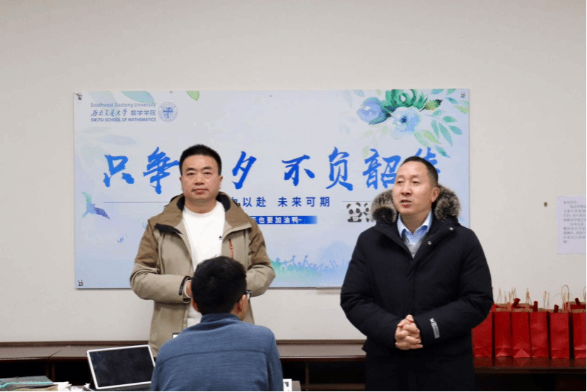 在2025年全国硕士研究生招生考试倒计时11天之际,为了缓解数院学子的备考压力,坚定备考信心,12月10日下午4点,太阳集团tcy8722经理杨晗,党委副书记黄祥,副经理潘小东,学工组辅导员老师等组成慰问团,深入考研自习室开展考研慰问活动,给在知识海洋中奋力拼搏的学子们送去关怀与力量。