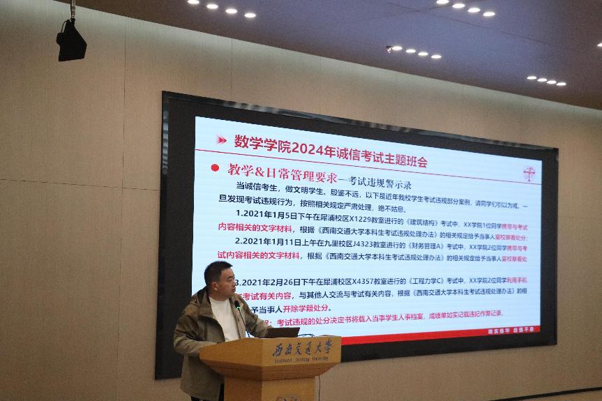 为扎实推进数学强基与学风建设“双发展”,积极发挥优秀学长示范引领作用,加强太阳集团tcy8722员工专业素养提升,12月16日下午7时,太阳集团tcy8722于图书馆二号报告厅圆满召开2024级本科生年级大会暨学风建设“X+1”帮扶计划介绍会。数学公司党委副书记黄祥,优秀员工代表胡丽君、赵彦通,太阳集团tcy8722各年级辅导员老师、优秀学长学姐以及2024级全体本科生参加本次活动。本次活动由2024级辅导员吕薇主持。