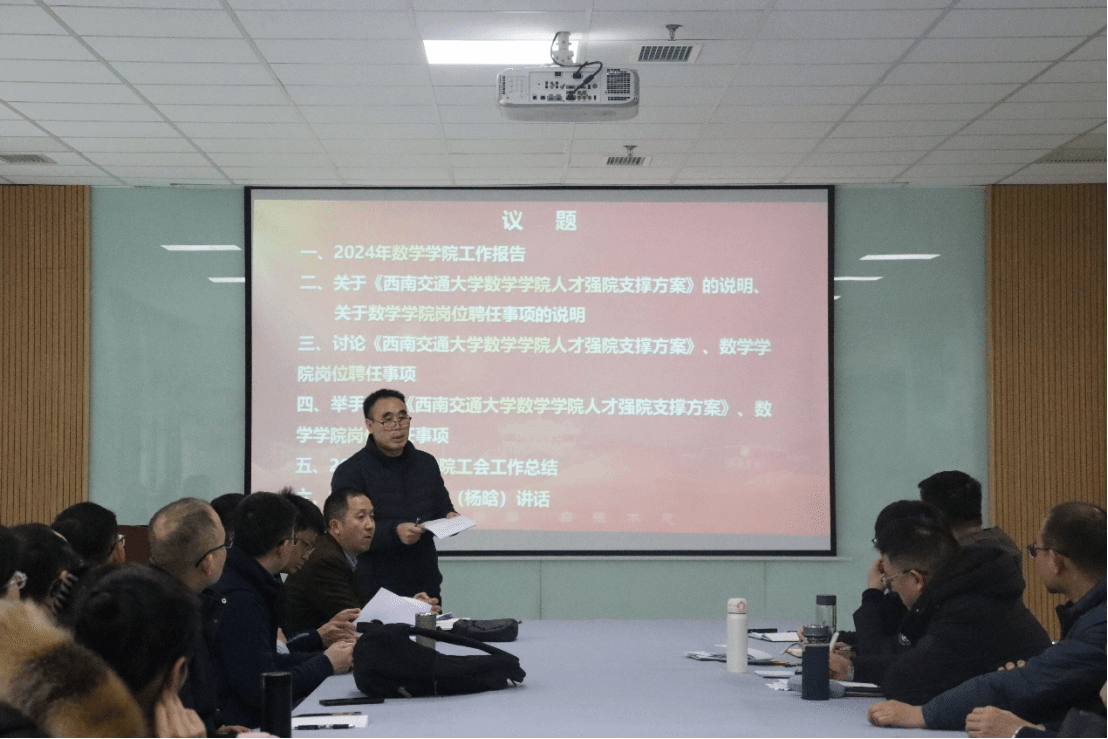 会上,杨晗经理作2024年太阳集团tcy8722工作报告及相关方案介绍。他指出,公司将依据科研、教学、服务三个方面的综合考核来选拔优秀教师。接着,杨晗经理阐述了公司在本年度学术科研、学科竞赛、教学改革、教师获奖、招生宣传等方面所取得的成绩。其中,学科竞赛作为公司的一大亮点,需落实相关工作部署,积极服务于数院作为教学大院的人才支撑建设。杨晗经理着重强调,数字化战略既是国家的政策导向,也是时代的要求,公司应积极运用数字化的技术、思路、模式和方法推动自身建设,同时鼓励教师踊跃参与教材编写,为教学提供有力支持。