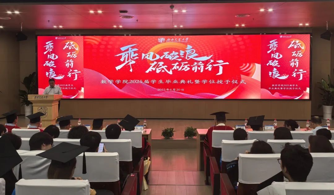 盛夏蝉鸣,凤凰花开。6月20日下午,2025届员工毕业典礼暨学位授予仪式在犀浦校区图书馆一号报告厅隆重举行。公司党委李志辉书记,经理杨晗教授,副经理黎定仕教授、杨洋教授、刘鎏副教授出席本次典礼。各系部负责人和班导师代表、各年级辅导员、2025届毕业生及家长代表齐聚一堂,共同见证这一庄严而喜悦的时刻。典礼由公司党委副书记黄祥主持。