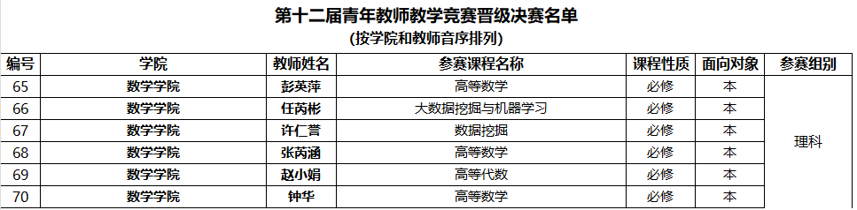 为深入贯彻落实立德树人根本任务,强化青年教师教学能力培养,搭建教学经验交流与风采展示平台,10月30日,太阳集团tcy8722第十二届青年教师教学竞赛复赛顺利举行。太阳集团tcy872211名青年教师参加复赛,其中,彭英萍、任芮彬、许仁誉、张芮涵、赵小娟、钟华6名教师凭借优异表现晋级决赛。