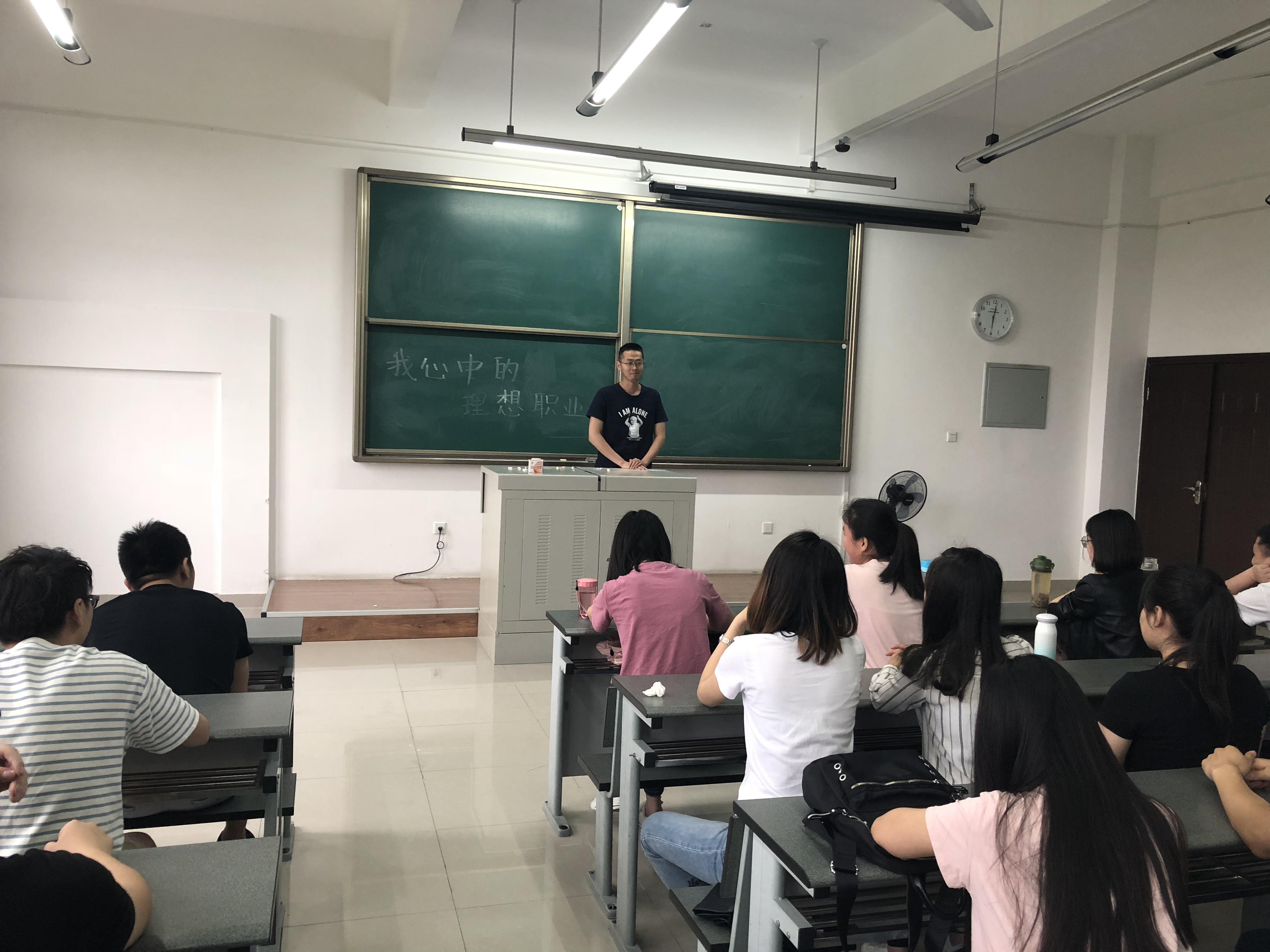 班会开始,由班长介绍班会具体环节,接着由班上的每个同学上台进行自述,大致介绍自己理想的职业,以及获取此职业自己在接下来的研究生学习生活中应制定怎样的计划。接着,进入交流环节,班级同学之间进行交流和相互完善,确定自己最终的最优职业生涯规划表。最后大家完成了问卷调查,至此班会圆满结束。