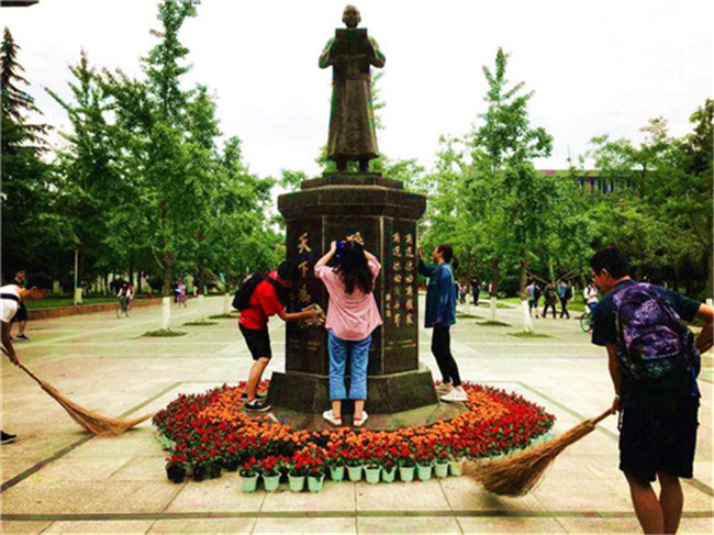 6月初,17级统计二班在统计二班团支部的组织下开始了以“怀揣中国梦,助推成长梦”为主题的团日活动。此次活动的主要内容是了解优秀前辈的事迹,清理校内的雕像,树立文明意识,建设伟大理想。