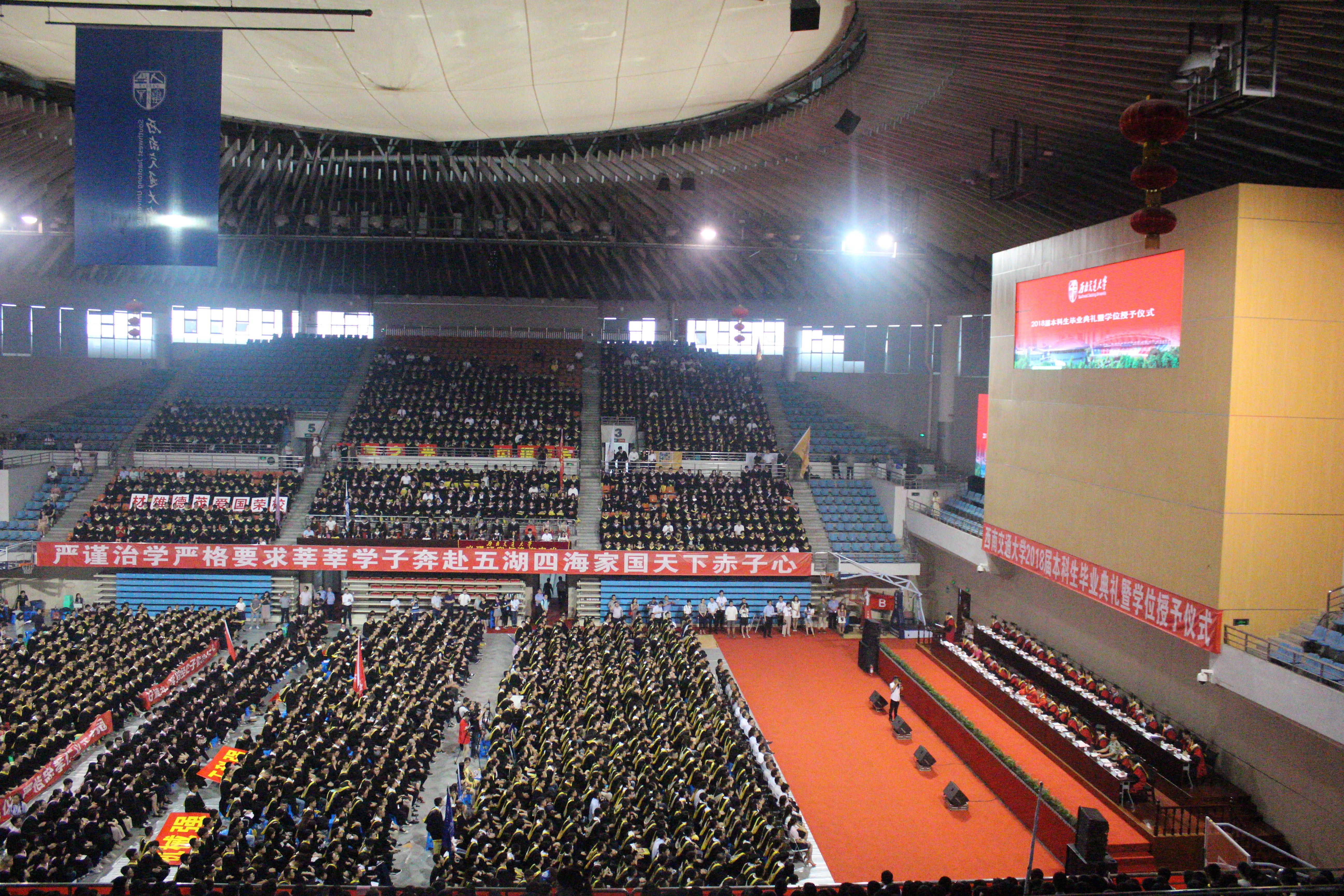 6月23日早上8点半,太阳集团tcy87222018届本科生毕业典礼暨授位仪式在飞碟体育馆隆重举行。在播放了公司送给2018届毕业生们的图片电影《初心》后,毕业典礼在庄严的国歌声中拉开了帷幕。太阳集团tcy8722经理代表太阳集团tcy8722就坐于主席台,数学公司党委副书记杨育鸿老师以及太阳集团tcy8722辅导员邓思然老师和丰世隆老师也到现场观礼。