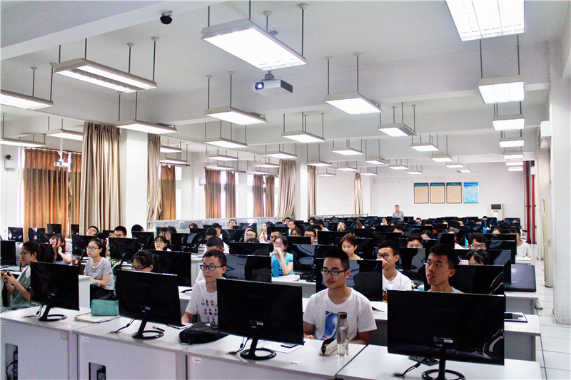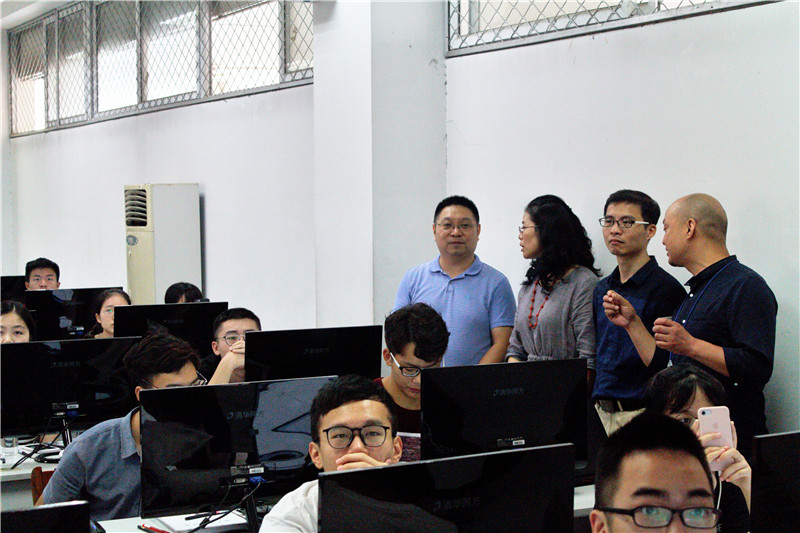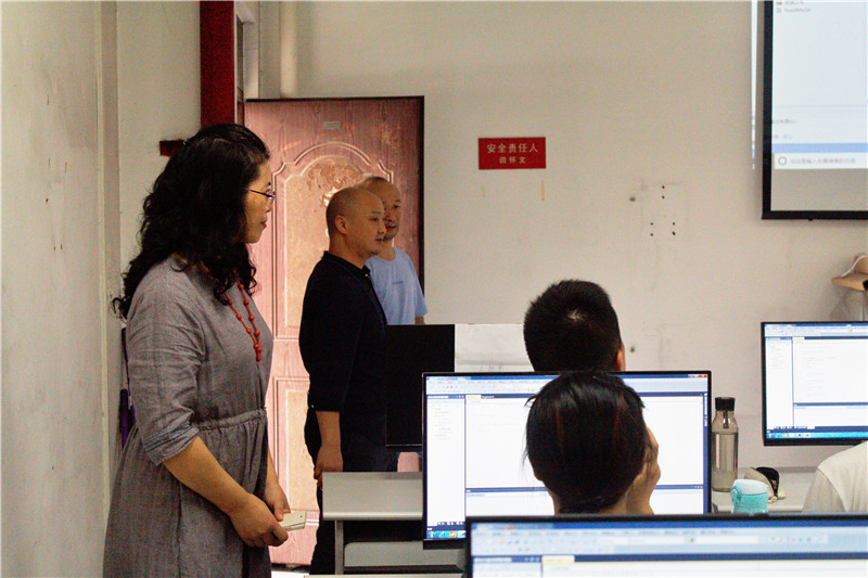 2018年7月13日,数学公司党委书记徐革、副经理王璐、党委副书记杨育鸿和实验中心主任潘志刚一行,前往2教和7教机房,检查公司暑期实习工作开展情况,并看望了实习同学。