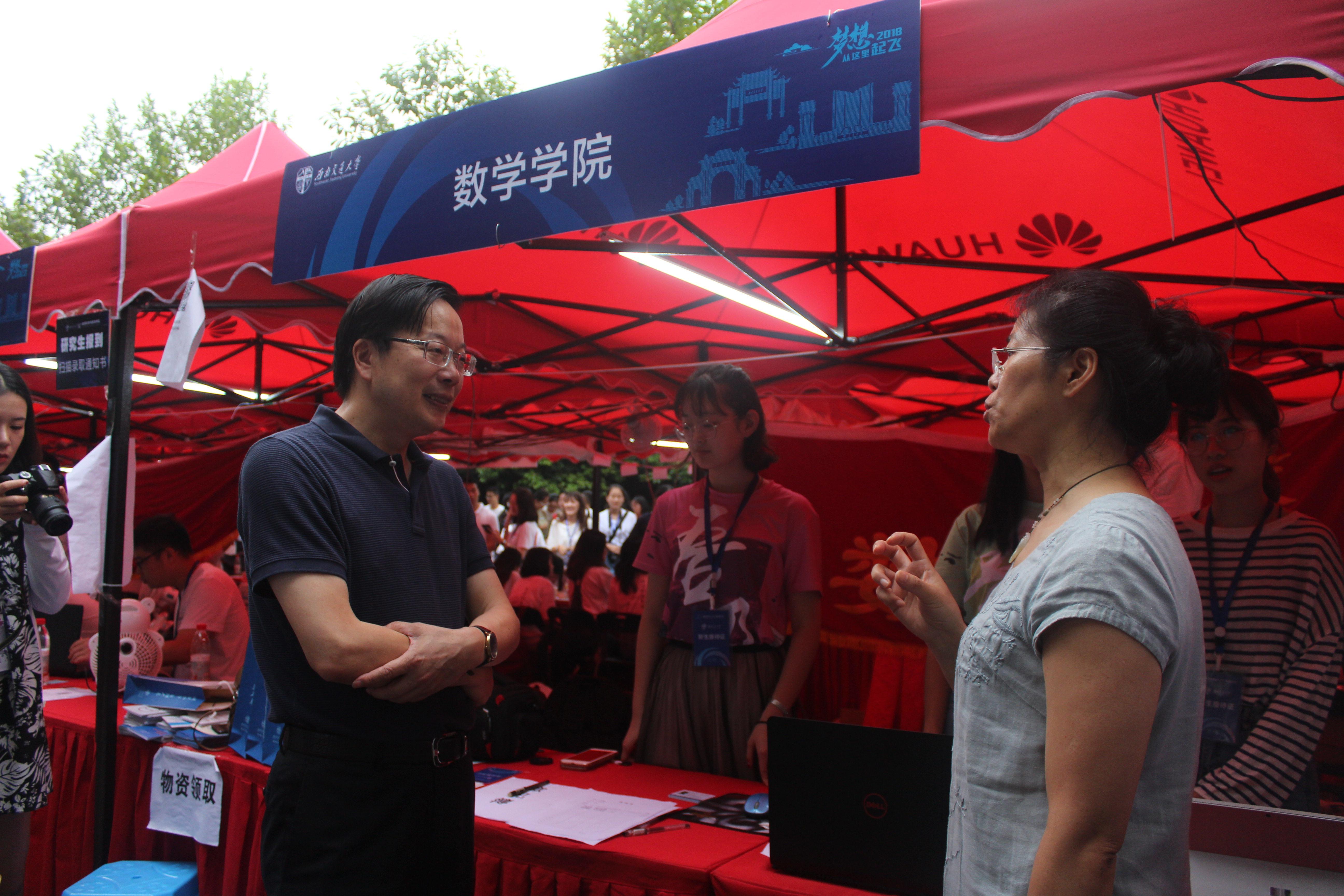 上午10点半左右,公司党委常委沈火明教授等公司领导也来到太阳集团tcy8722的迎新点,慰问了公司的迎新工作者们。沈常委亲切的询问了公司新生报道情况,并且和徐书记与杨经理进行了交流,指出数学作为一门重要的基础学科,越来越多的员工意识到了学习好数学的重要性,自主填报数学专业,数学的研究生招生在不断发展,博士生招生也将在后续启动,公司也将给予大力的支持助力数学学科更好的发展。