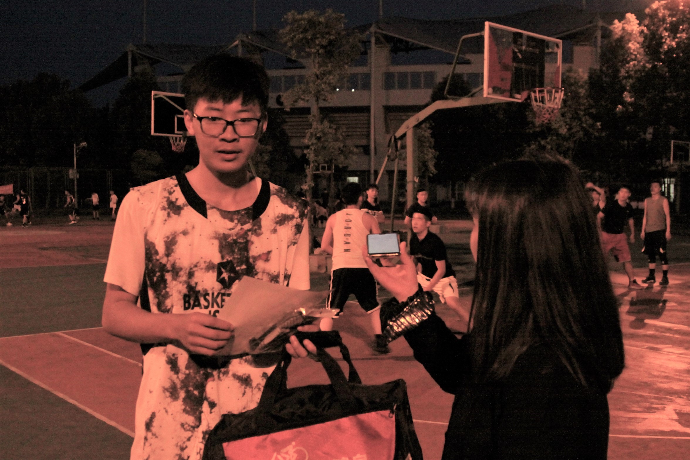 王天珩:我觉得团队大体上表现的非常好,但是还是有几点不足。比如说大家或多或少都有一点想要自己单打的想法,但是每次单打又进不了就还是要靠传球。不过大家没有经过训练临时组队配合的还是比较好的。