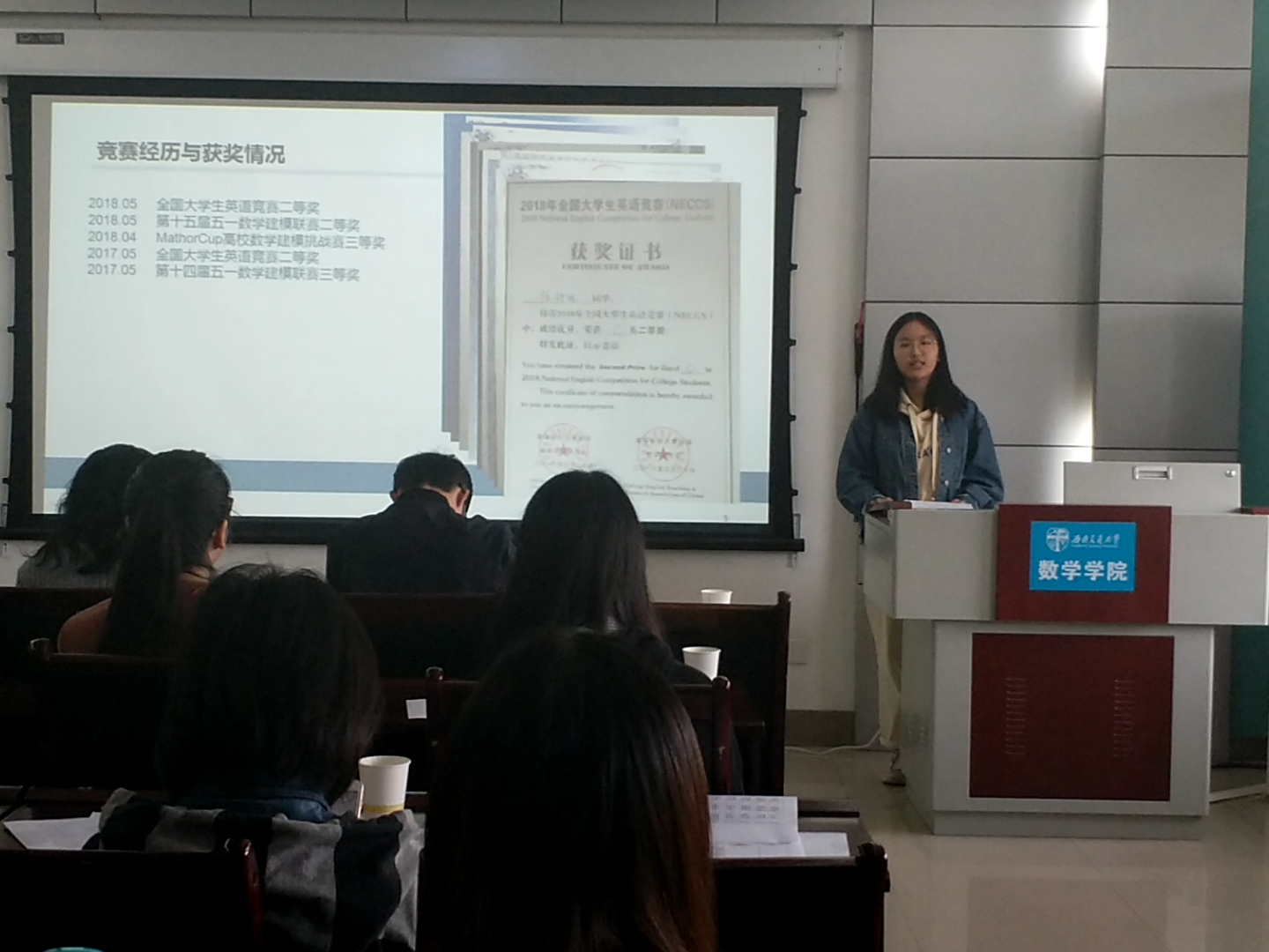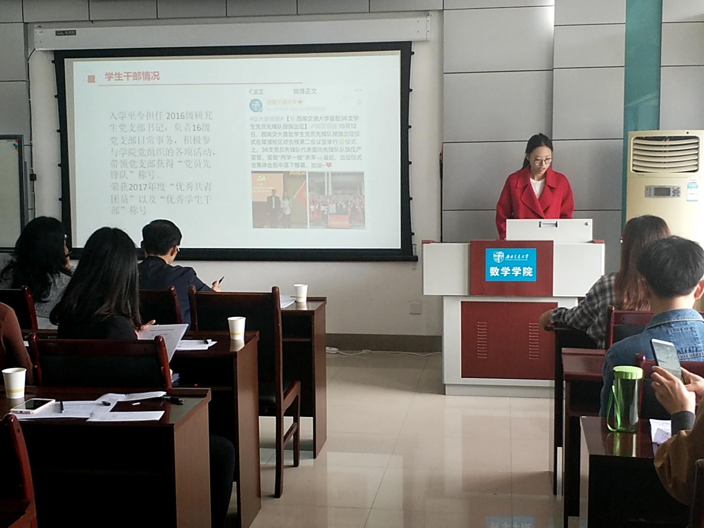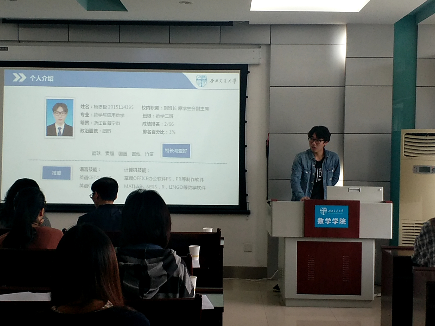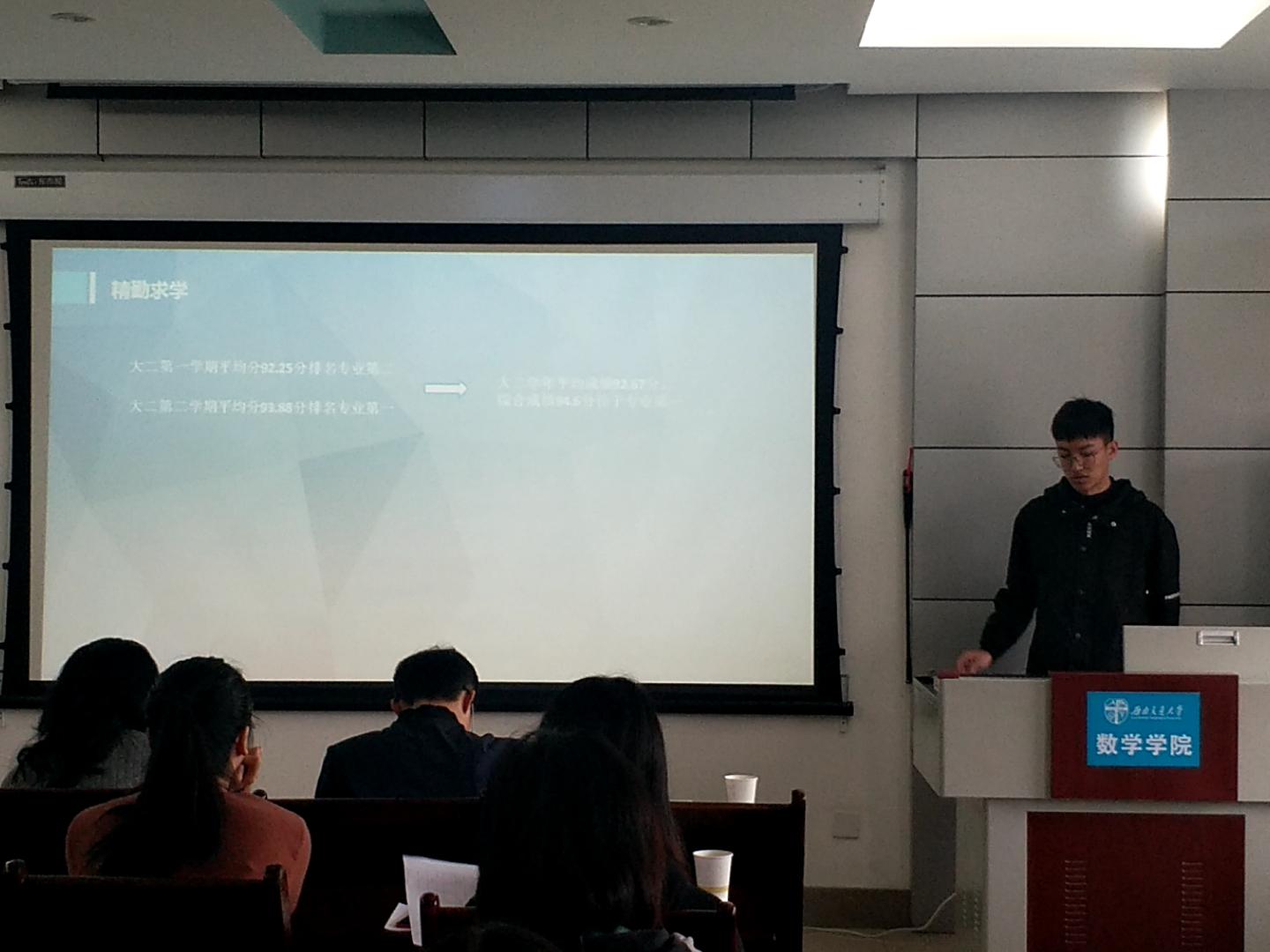 10月9号上午九点半,太阳集团tcy8722评奖评优答辩评选在X2511召开。担任答辩会的评委有数学公司党委书记徐革教授、党委副书记杨育鸿老师,公司团委书记邓思然老师,班导师代表程世娟、王中宝老师,辅导员代表钟义婷、谢童心老师以及本科生代表员工会主席祁元和研究生代表研会主席杨涵。