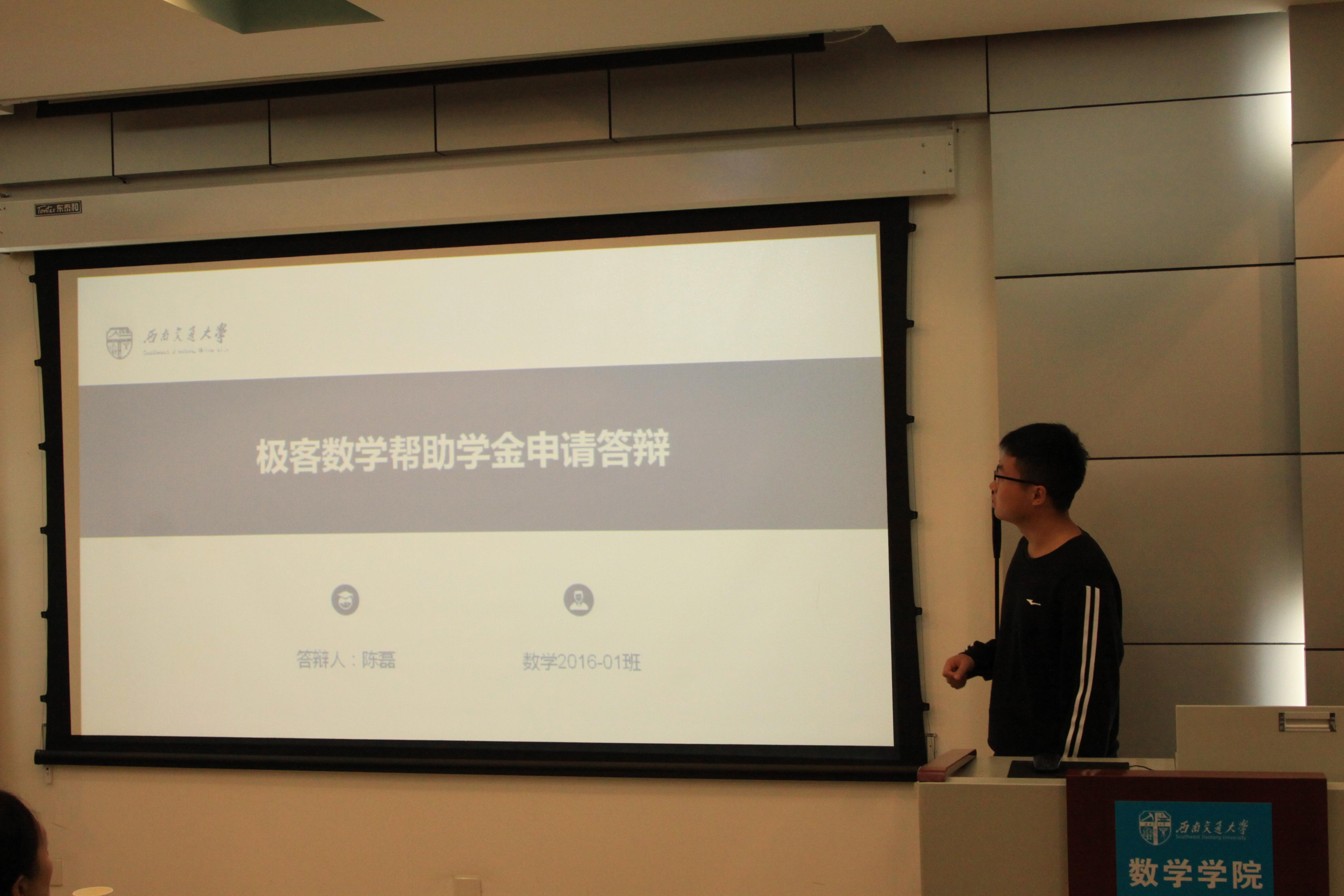 首先进行的是极客数学帮奖学金答辩,答辩者从学习情况,科研竞赛,员工工作,社会实践等方面进行了自我的展示,彰显了交大学子优秀的综合实力。