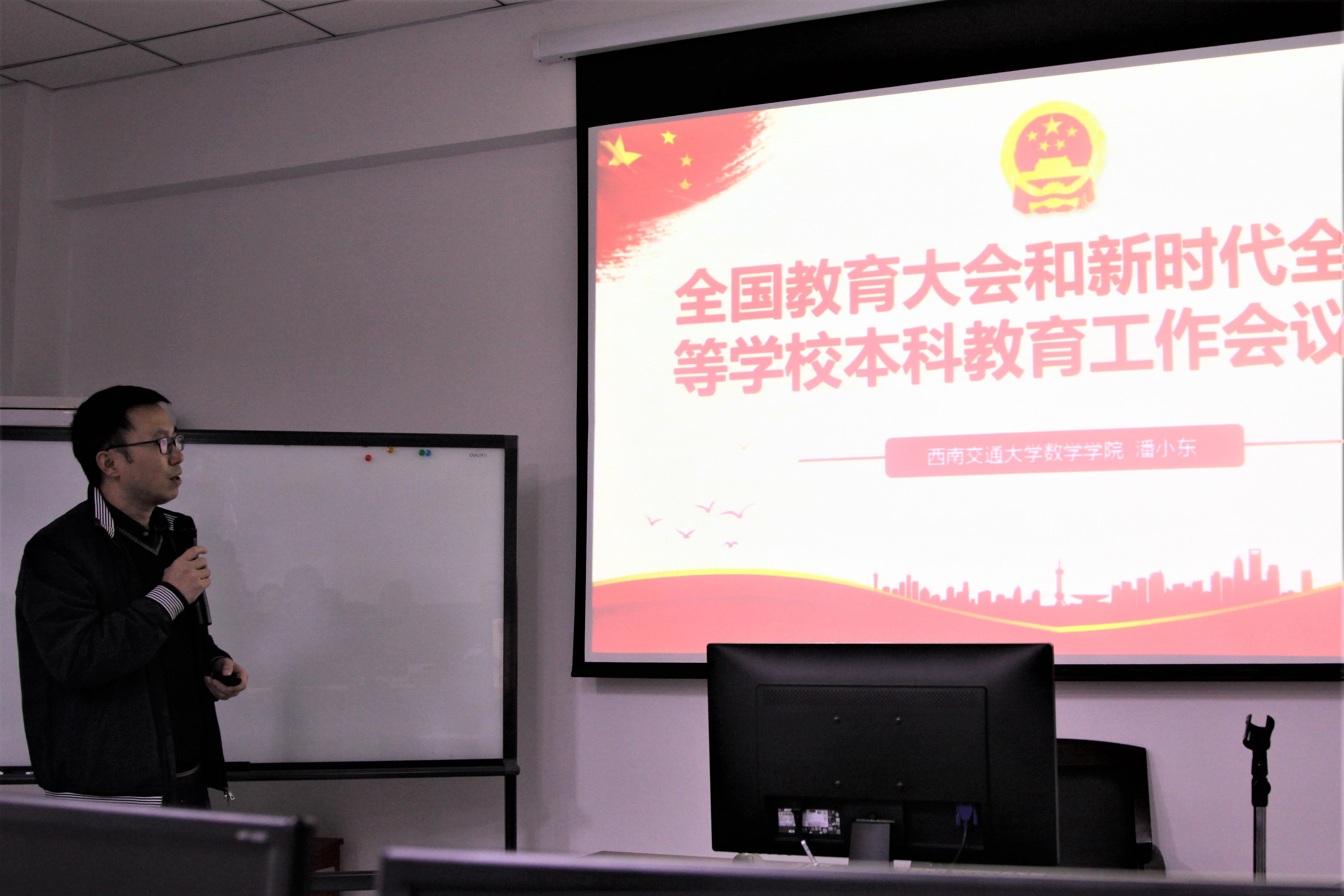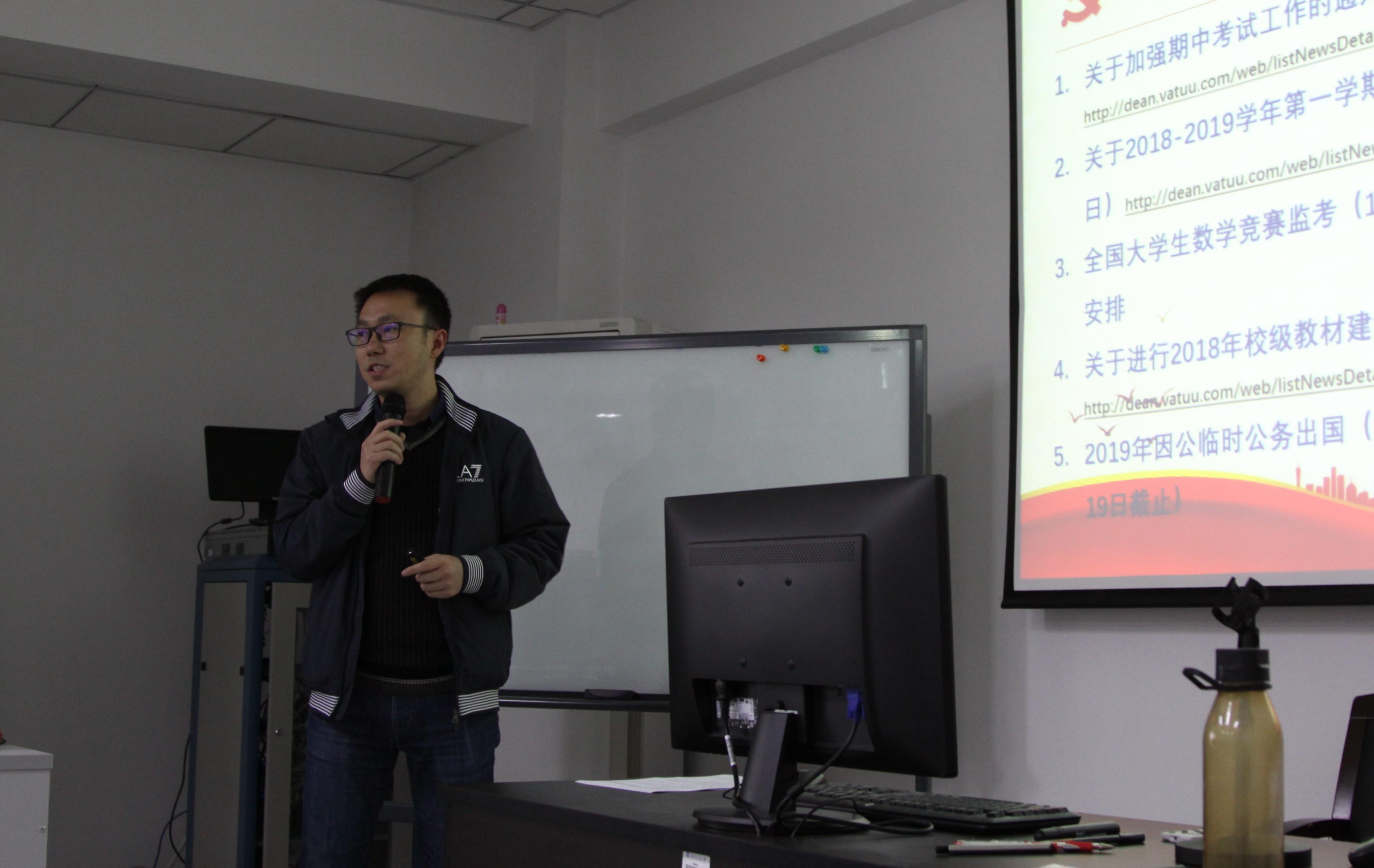 会议开始,副经理潘小东报告了本科教学及国际化近期工作安排,包括关于加强期中考试工作、本科教学期中检查安排、全国老员工数学竞赛监考安排、校级教材建设研究课题立项申报和对外学术交流合作计划等工作。