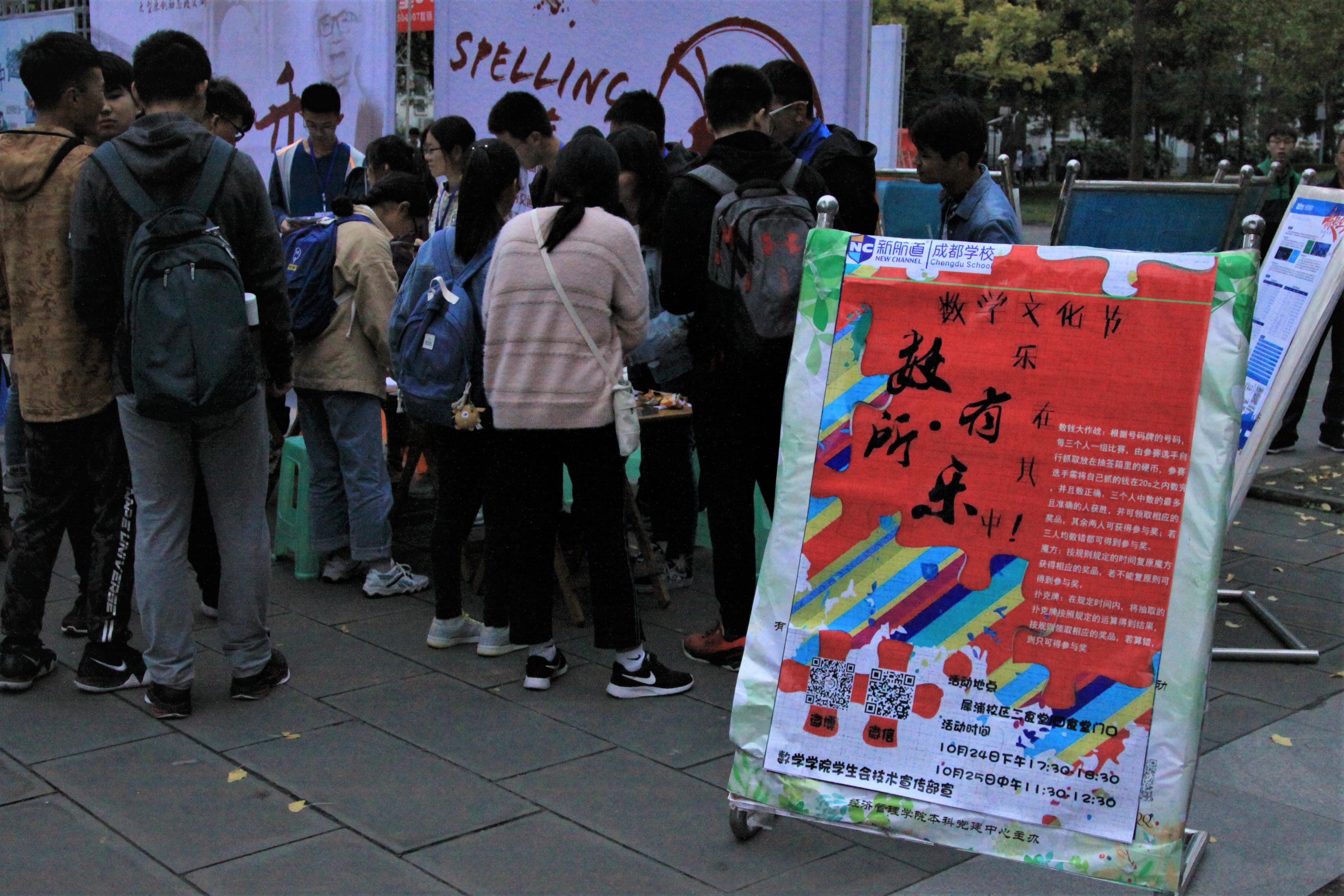 为了激发广大同学对数学的学习兴趣,太阳集团tcy8722于10月24日下午5时30分在二食堂和四食堂门口展开了 “数学文化节”的宣传活动——“数有所乐”,本次活动由公司员工会负责举办。