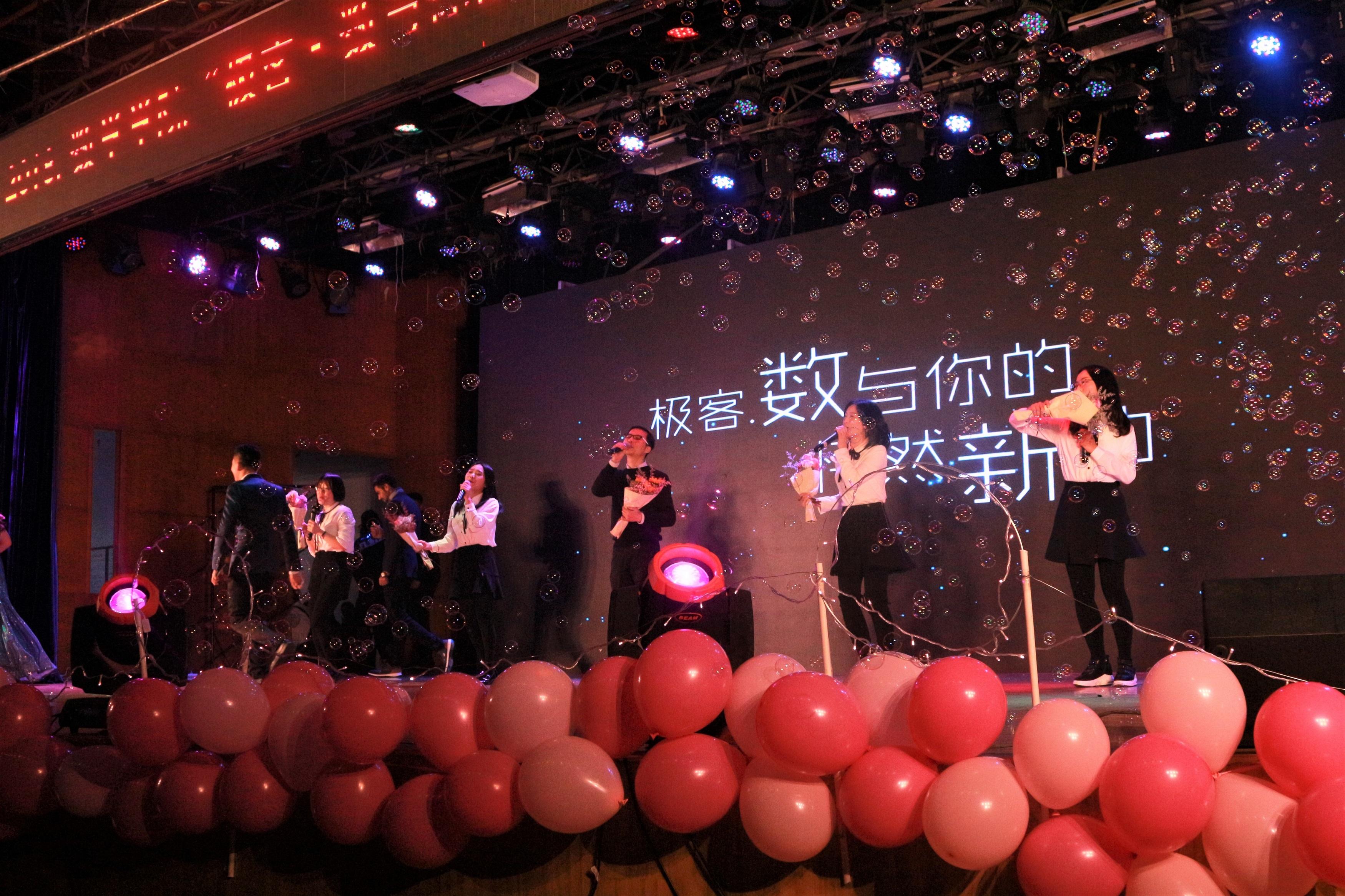 11月29日晚上7点30分,2018年“数与你的怦然新动”主题迎新晚会在太阳集团tcy8722犀浦校区二食堂三楼老员工活动中心正式举行。出席本次迎新晚会的领导老师以及企业代表有数学公司党委徐革书记、杨晗常务副经理、潘小东副经理、王璐副经理、李志辉副经理、数学公司党委杨育鸿副书记、经理助理兼数学系副主任黎定仕老师、校团委宣传部部长郑源老师、极客数学帮尹庆兵经理、成都朗阁培训中心何旭老师、太阳集团tcy8722信息与计算科学系周正春老师、范翠玲老师、数学系陈桂玲老师、18级本科班导师刘鎏老师、太阳集团tcy8722团委书记邓思然老师、太阳集团tcy8722辅导员谢童心老师、钟义婷老师及李思佳老师,同时还有其他兄弟公司团委老师和员工会主席。