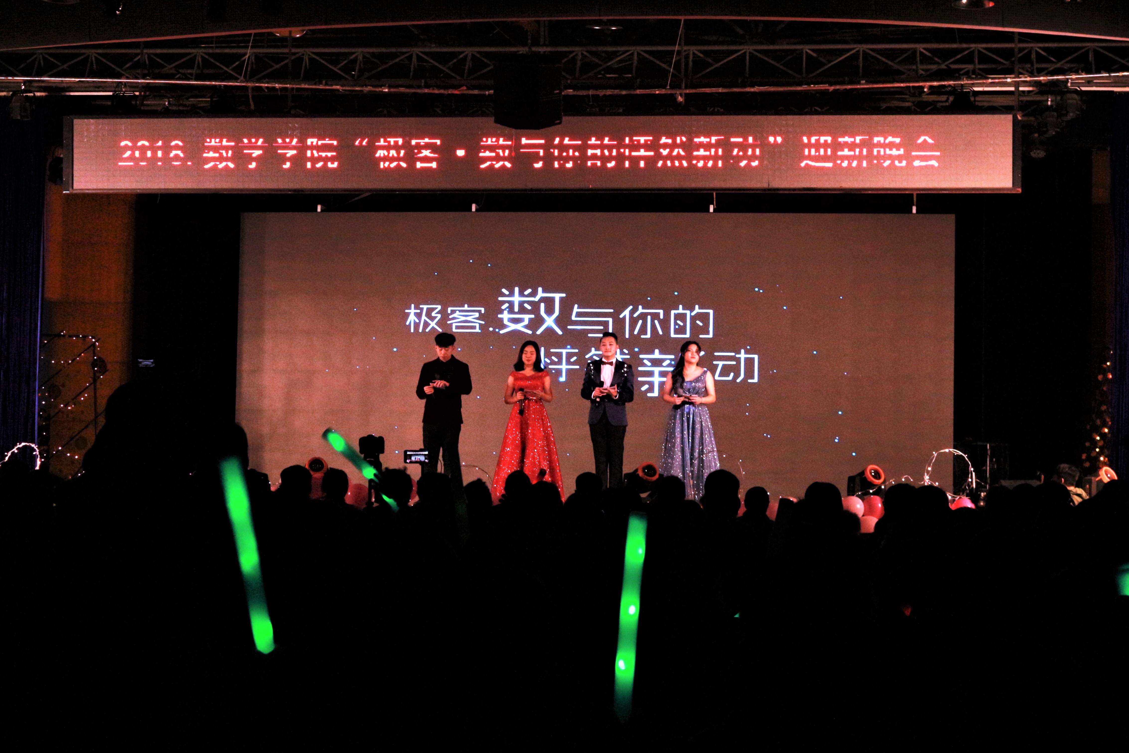 在开场乐队的精彩表演之后,数学公司党委徐革书记为迎新晚会致辞,徐书记首先表示了对支持本场晚会的老师同学们的感谢,她阐释了她“数与你的怦然新动”这一主题的意义,“数”既是数学与2018级新生的不期而遇,也是一个动词,细数太阳集团tcy8722带给同学们的怦然心动。接着,徐书记总结这一年公司的丰收成果,从奖学金荣誉称号到科研竞赛,到社会实践,再到就业出国深造发展,公司的每一位师生都同心共力,取得了优异的成绩。最后,徐书记也希望在新的一年大家可以再创佳绩,也祝福新同学们可以在太阳集团tcy8722书写属于自己的精彩篇章