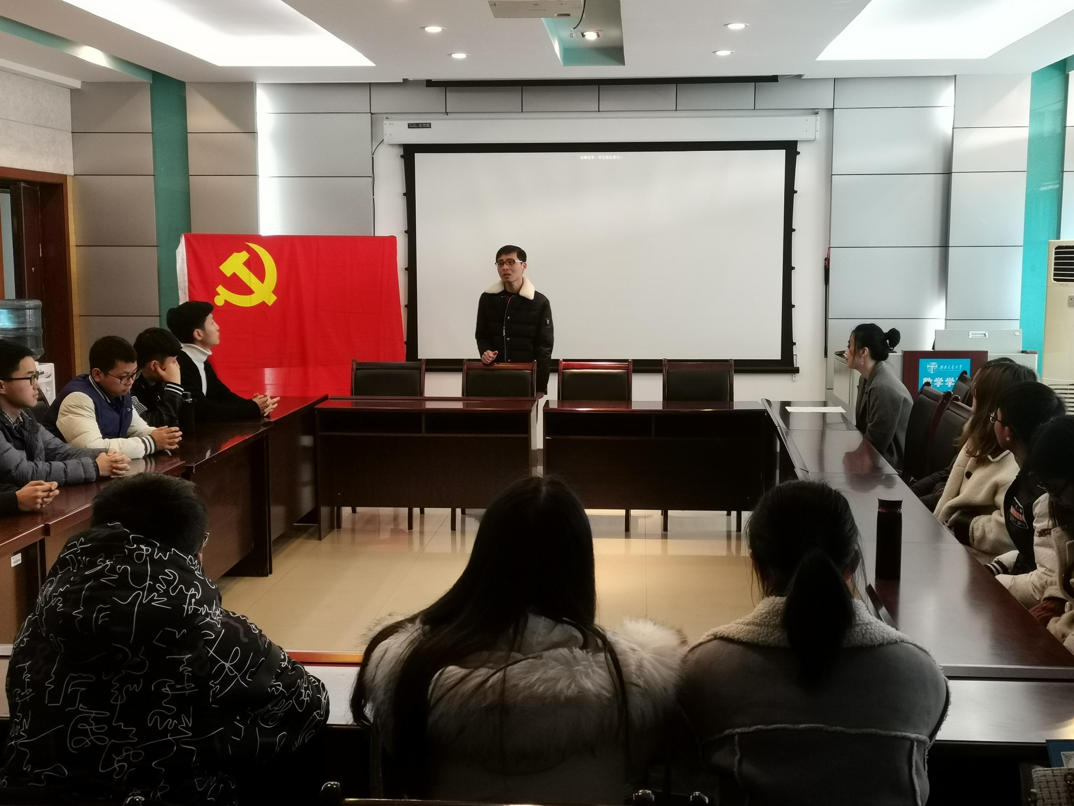 然后,杨育鸿老师为新党员同志们讲述了入党誓词含义,希望同学们慢慢通过实践感悟誓词的真谛。同时,他告诫同学们入党要有决心、宣誓要有真心,认真履行自己作为党员的义务。杨育鸿老师告诉在场所有同学,要时刻牢记自己党员的身份,对在自己的要求应该是比一般人更高而且越来越严格的,要努力让自己成为一名优秀的党员,用实际的行动和表现来强化自己的诺言,通过政治理论和科学文化的学习来提高自身素质。并且发挥党员的先锋作用,积极工作,遵纪守法,做新时代的优秀党员。