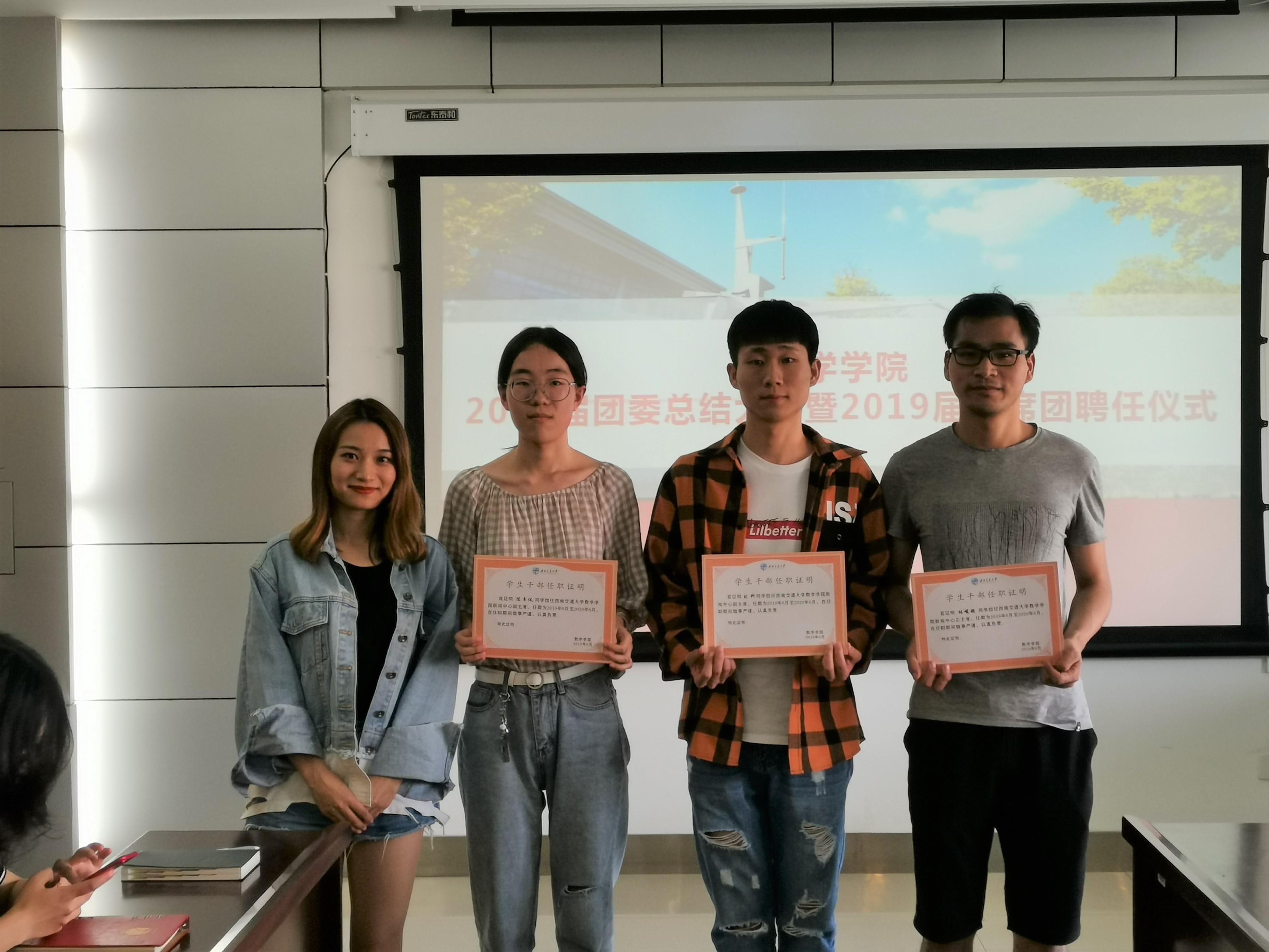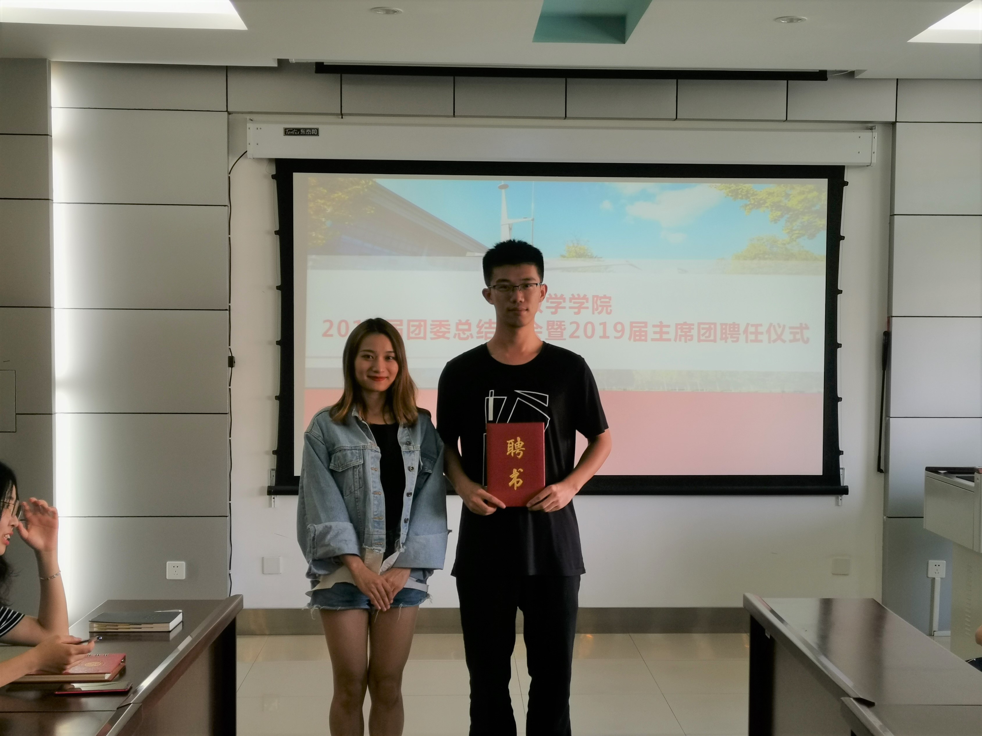 首先,在X2511会议室进行的是2018级团组织2018届主席任职证明颁发仪式和2019届团组织主席团聘任仪式。来自太阳集团tcy8722员工会、新闻中心和青年志愿者协会的新老主席团代表依次上台,领取属于自己的聘书和任职证明。