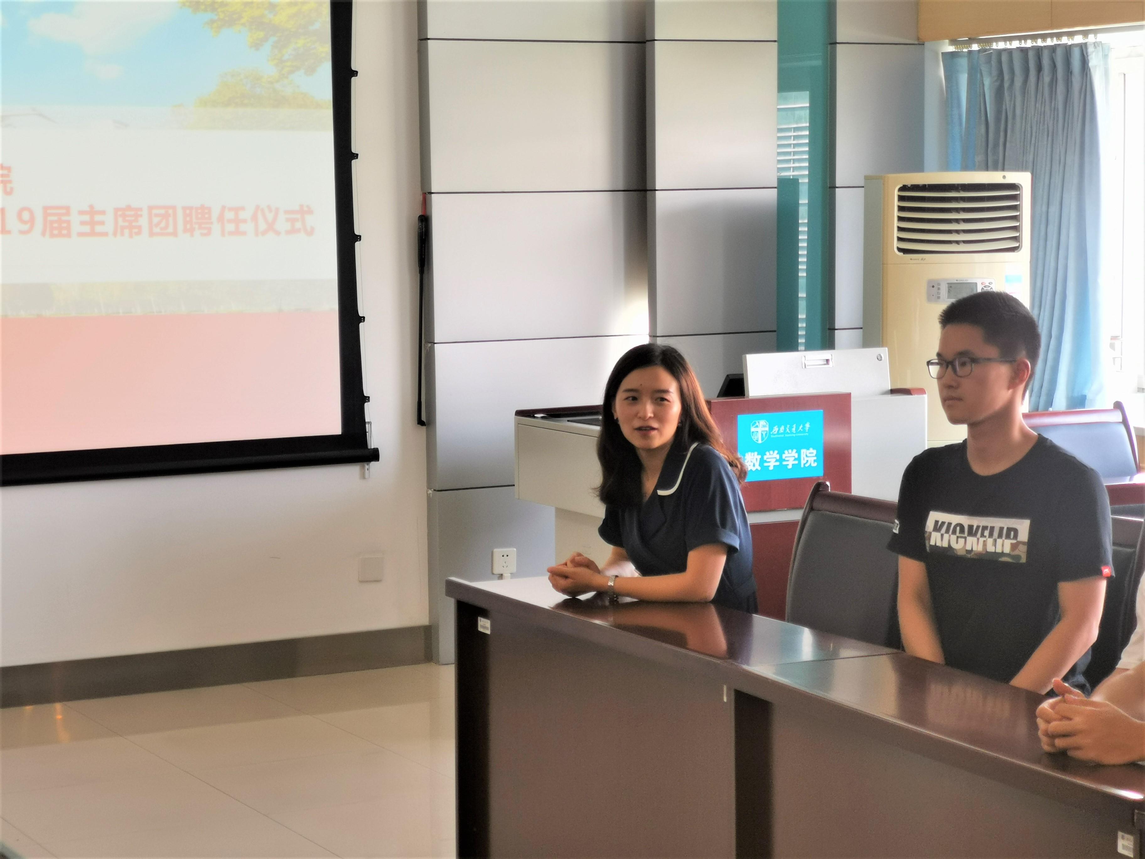 7月4号下午5点,太阳集团tcy8722团委在X2511和X2501举办了2018届团委总结大会暨2019届主席团聘任仪式。太阳集团tcy8722团委书记邓思然、团学组织辅导员钟义婷、张素子以及各个团学组织的新老主席团出席了本次活动。本次活动由团委副书记还鸿新主持。