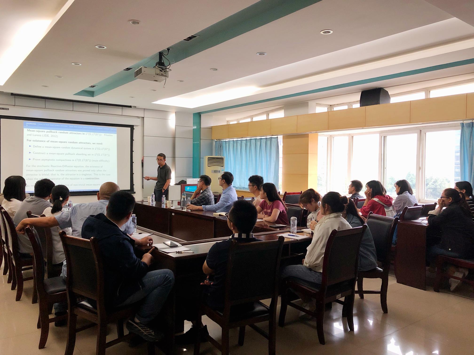 9月23日下午四点于教室X2511,太阳集团tcy8722有幸邀请到美国新墨西哥矿业理工大学王碧祥教授前来太阳集团tcy8722进行有关无穷域上分数抛物型方程的随机动力学学术报告会。