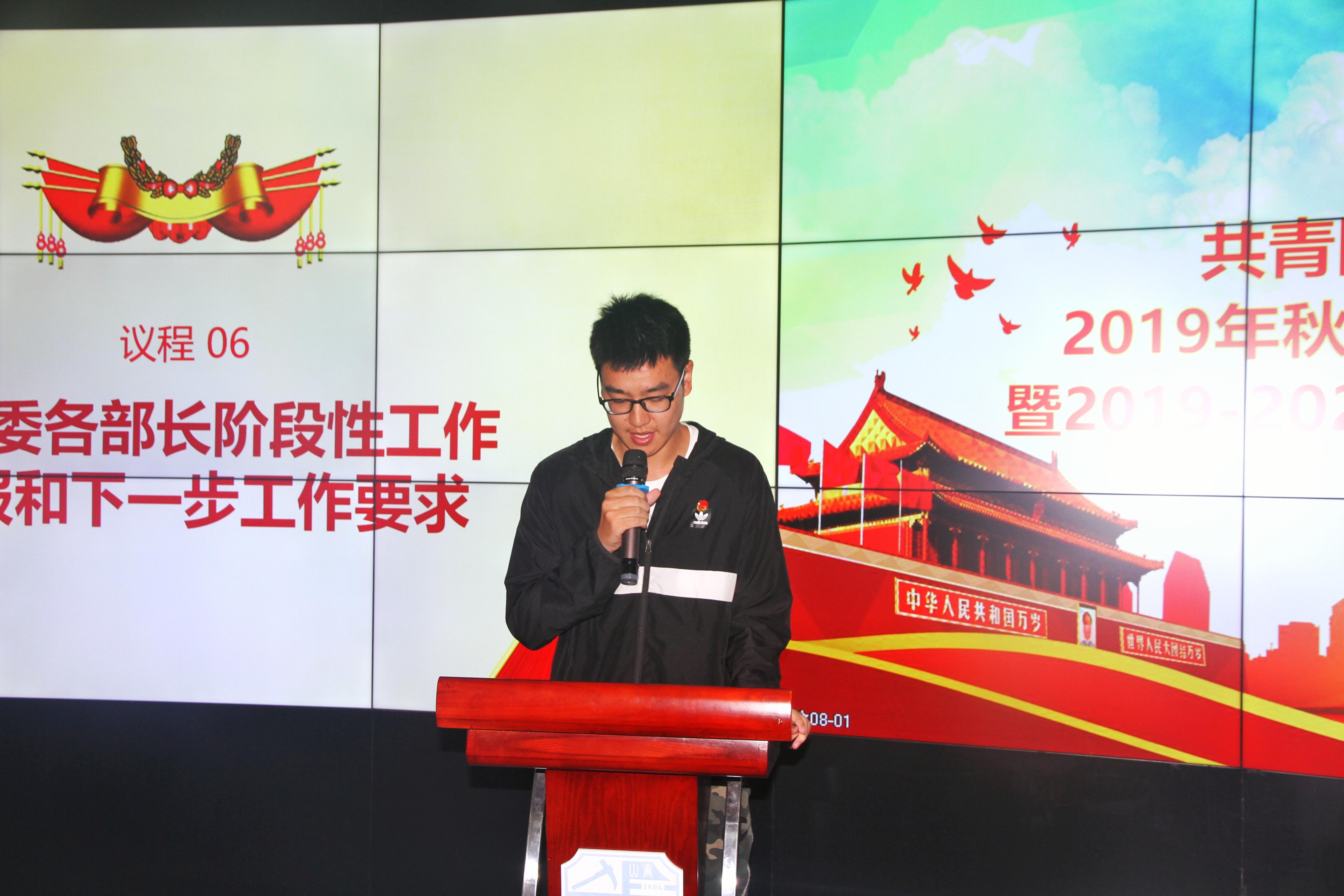 10月10日下午四时,2019年秋季“开学第一堂团课”暨2019-2020第一学期团支部工作会于X4232召开。本次会议由太阳集团tcy8722团委书记邓思然主讲,团委副书记周义杰主持。