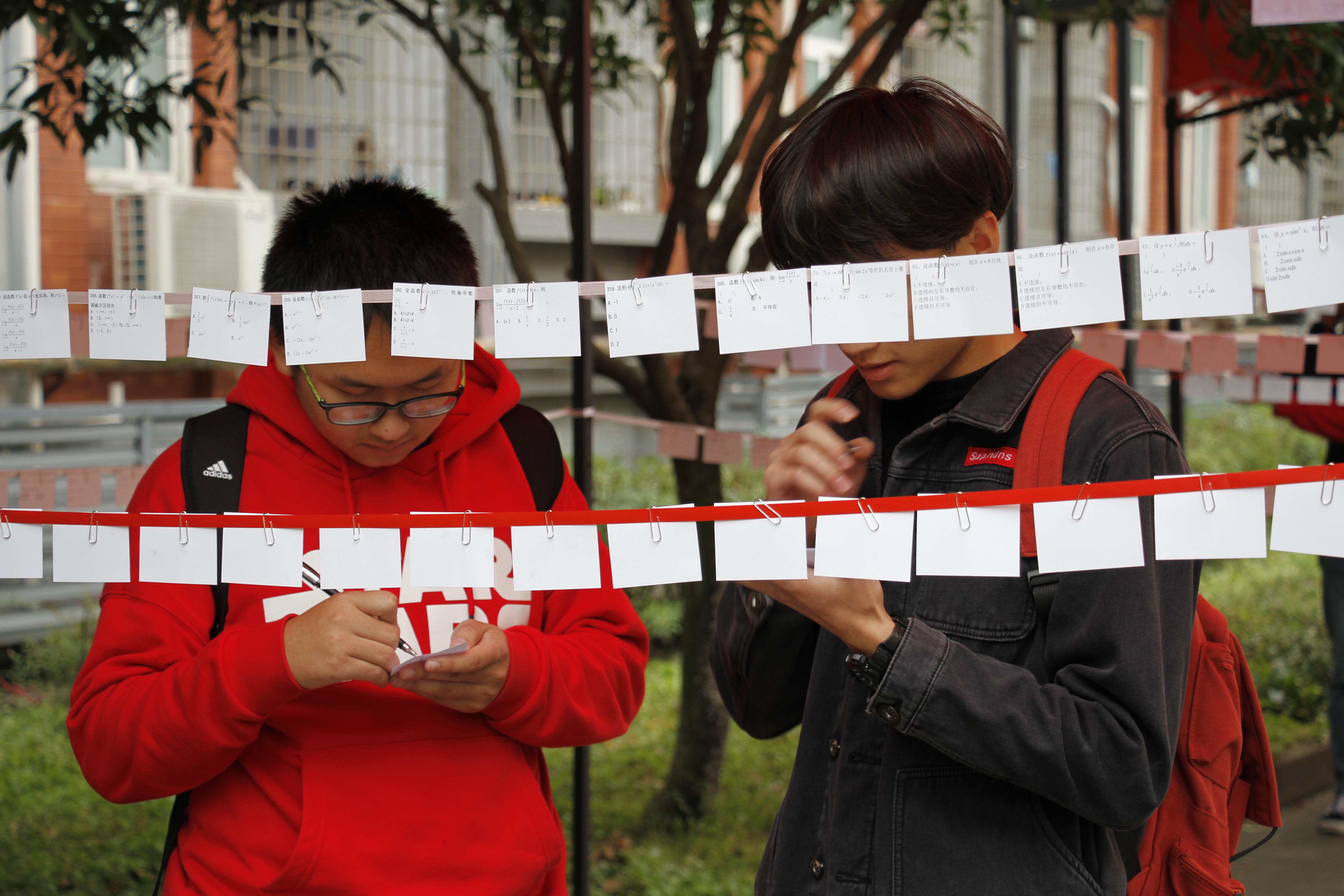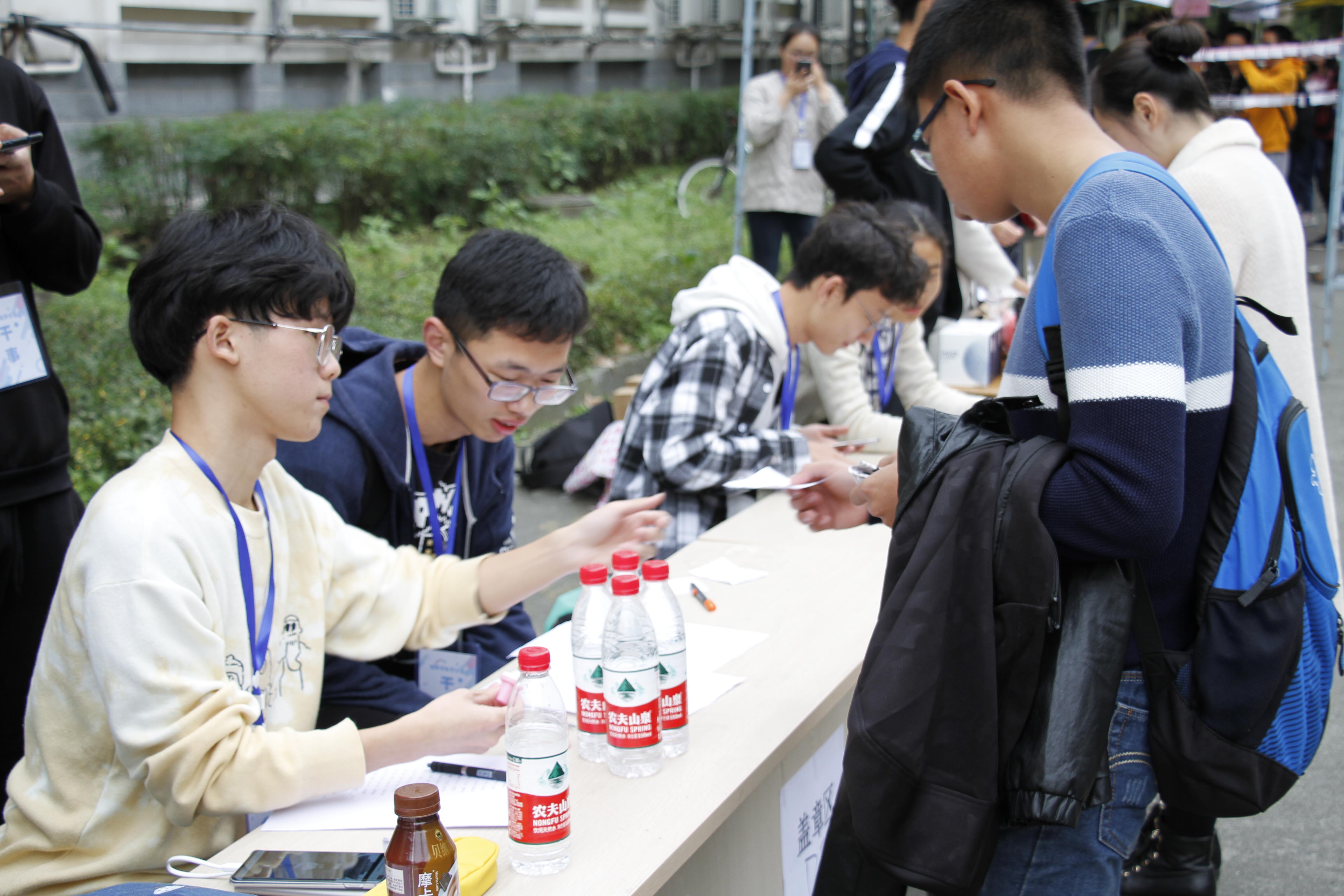 本次活动有答题区、盖章区、游戏区和奖品区,其中答题区包含数学史(A)、专业数学(B)、高等数学(C)、高考数学(D)、爱国知识竞赛(E)五个区,每个区的帐篷里挂满了印有题目的纸条,参与者只要答对题目便可获得相应的盖章。现场还设有表白墙,同学们可以将自己对祖国母亲、母校以及老师们的爱用文字记录下来。每个答题区里都是积极讨论的同学们,表白墙前也是迎来一批又一批的留字表白的同学,盖章区前同样挤满了交题等待批改、盖章的同学……现场的每位同学都尽情享受着活动带来的乐趣。