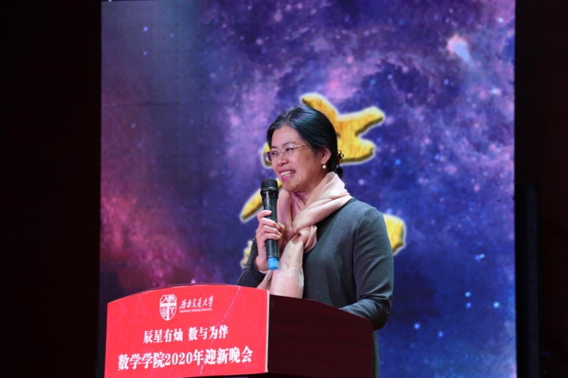 随着红色的幕布缓缓地拉开,清醒一下乐队的精彩表演瞬间点燃了全场同学们的激情。开场表演后,数学公司党委书记徐革教授为迎新晚会致辞。徐书记首先对2020级新生的加入表示了欢迎。接着,徐革书记总结了2020年公司取得的丰硕成果,从毕业生升学率、科研竞赛到社会实践,公司的每一位师生都同心共力,取得了突出的成绩。然后,徐革书记在阐述“辰星有灿,数与为伴”这一主题意义的同时也对支持本场晚会的师生表示了感谢。最后,徐革书记给2020级同学们送上祝福与希望,希望同学们能够笃行致远、砥砺前行。
