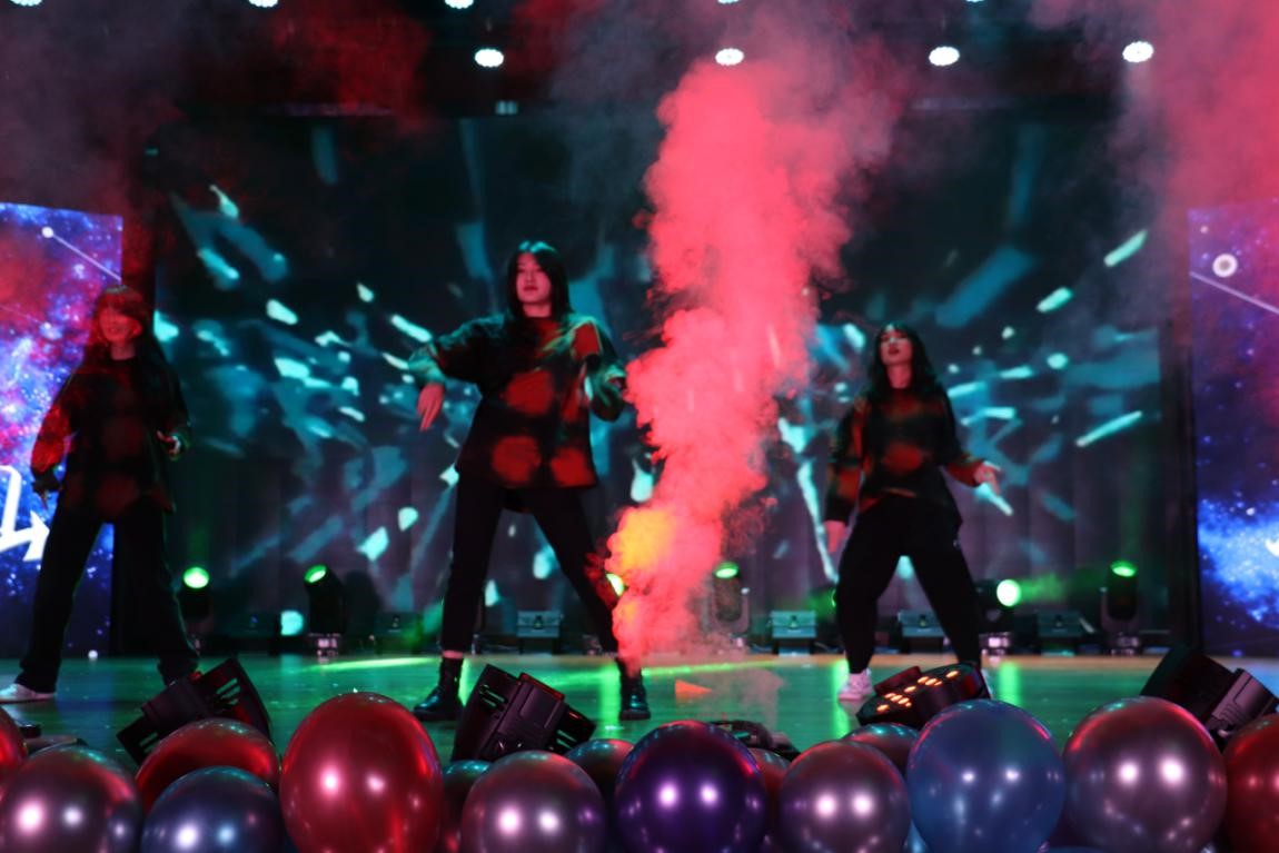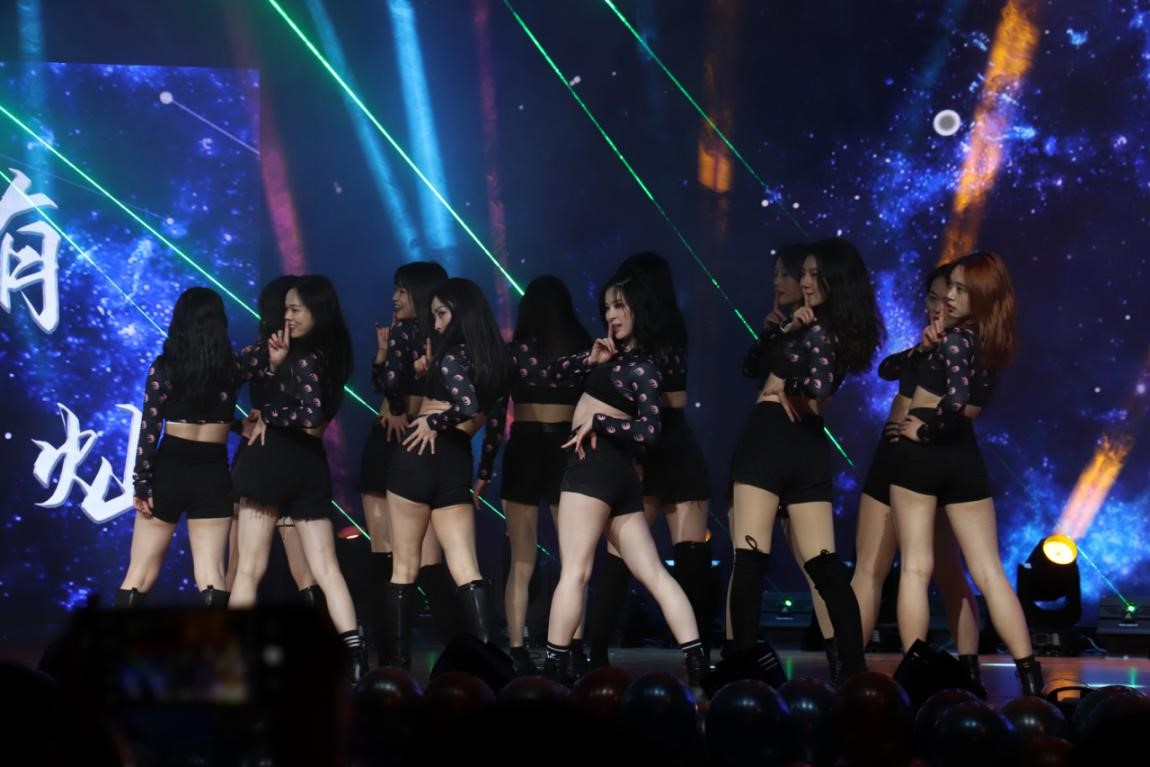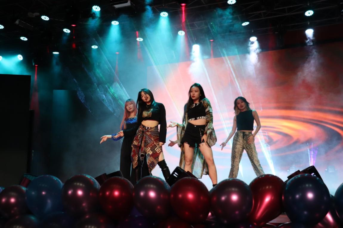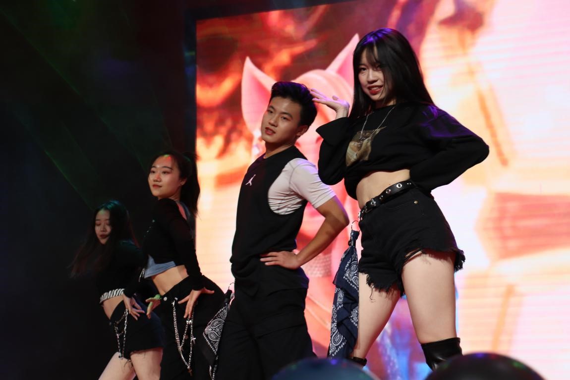第四个节目是由统计2020-02班和太阳集团tcy8722女团共同带来的女团舞串烧《AYA,The Baddest》,他们曼妙的舞姿和独特的风情燃起了青春之火,引起场下同学们的阵阵欢呼。