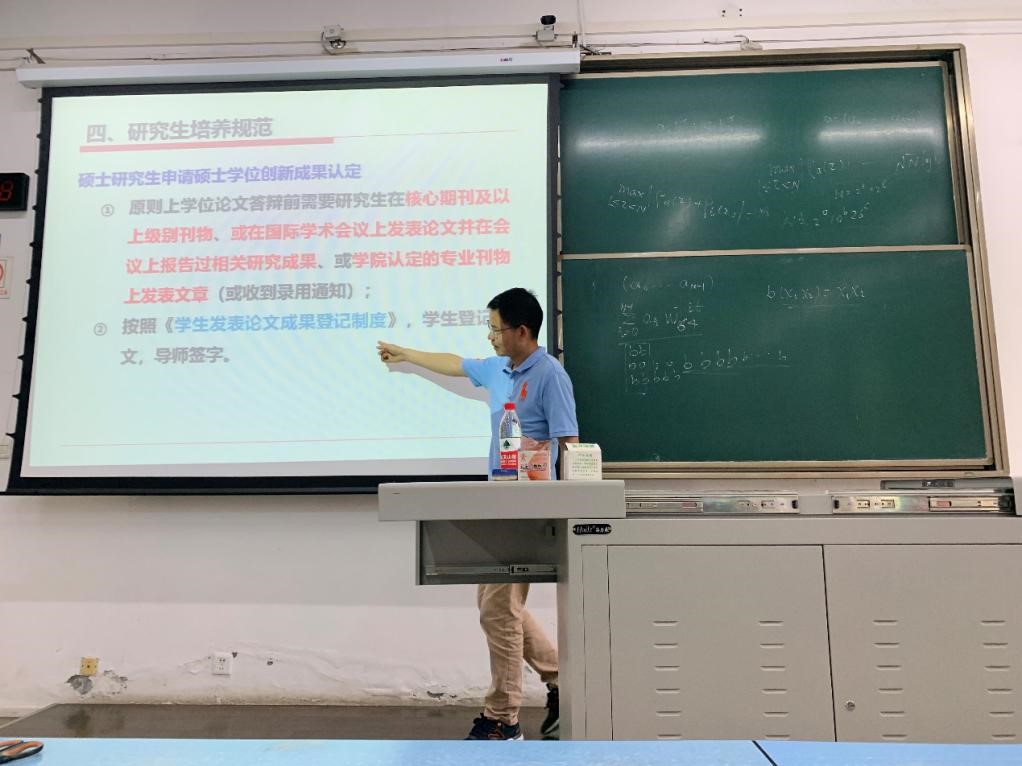 讲座的第二个环节则是杨洋教授关于公司产品规范进行的指导交流。首先作为一个研究生应该要了解本科生与研究生的“导”与“教”的关系与区别,研究所意在指导“为什么”,更倾向于主动学习而非被动。在研究生期间,还应主动制定学习计划与检查执行情况,需在完成导师指导任务的同时,注重培养自身的兴趣和好奇心,多读、多听、多讲、多写应成为研究生生活常态。最后,杨洋教授就研究生开题论证、公司产品过程环节时间节点要求、硕士学位创新成果认定、研究生毕业环节要求和安排、论文典型问题及其他相关制度等话题与同学们做了深刻的交流,要求同学们一定要端正学术态度与学术行为。同学们认真聆听,为将来发表学术论文打下了基础。