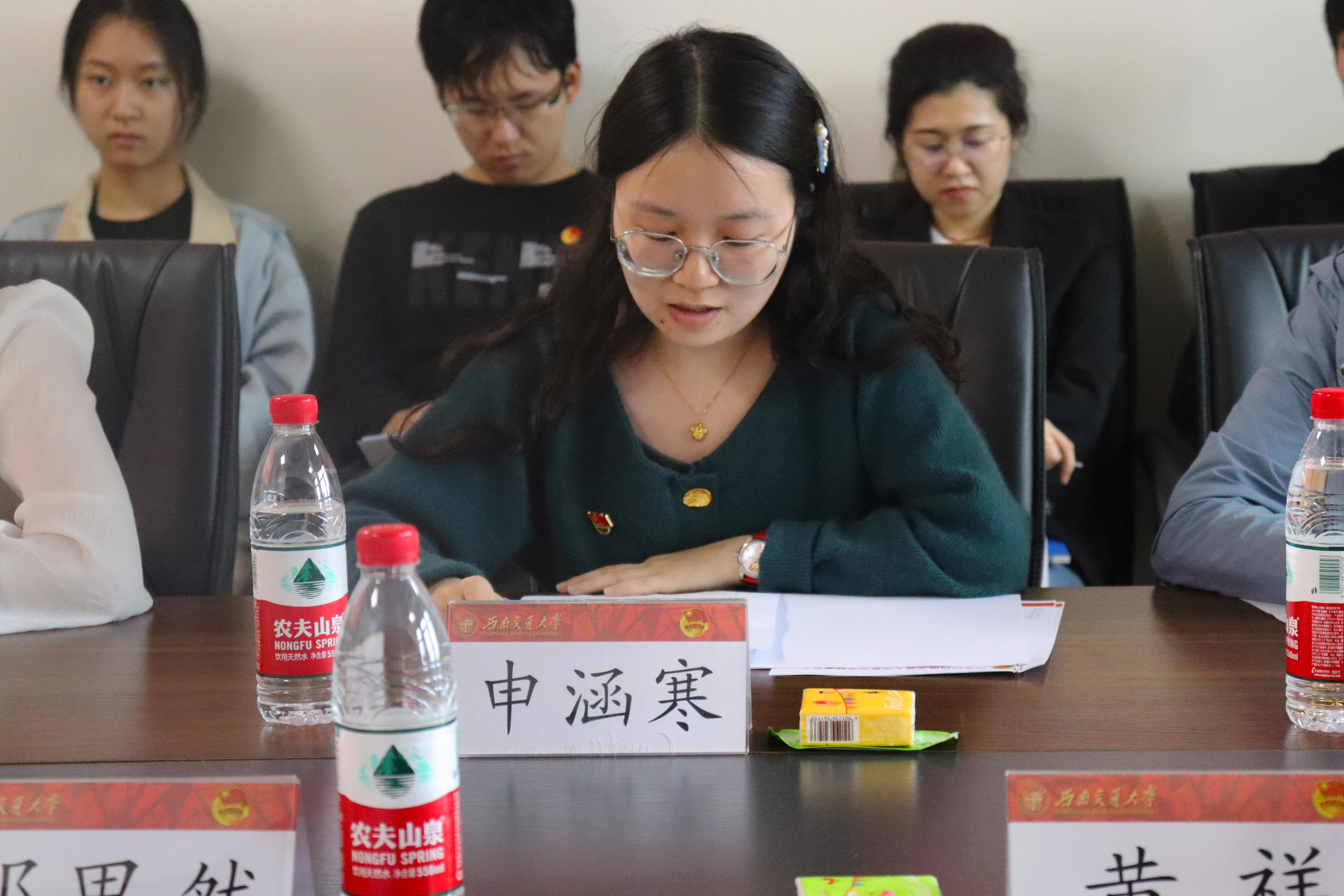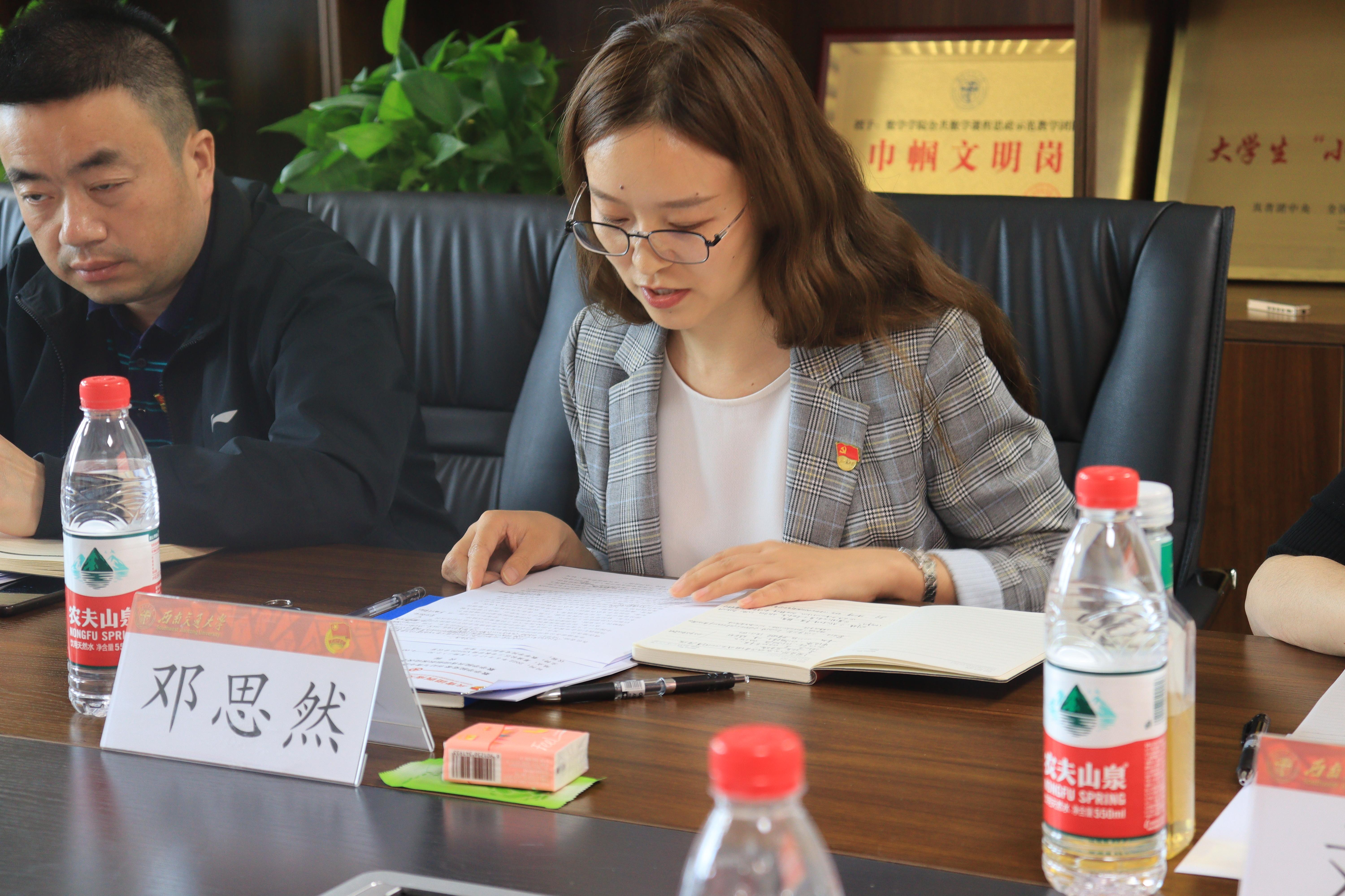 她首先汇报了公司共青团建设取得的出色成绩。她表示,院团委在公司党委、校团委、公司党委的领导下,围绕立德树人根本任务,强化团员思想引领,扎实开展育人实践工作,取得了良好的育人成效:公司8支队伍荣获团中央知行计划老员工优秀实践队称号,1名同学走进基层赴金牛区西安路街道办挂职锻炼,2名本科生投身西部计划参与公司研究生支教团,8名同学参与公司青马工程精英人才班、骨干人才班历练。这些优秀青年以自身的实际行动,影响着数院青年学子积极投身新时代的火热实践中,形成了一股强大的朋辈力量。