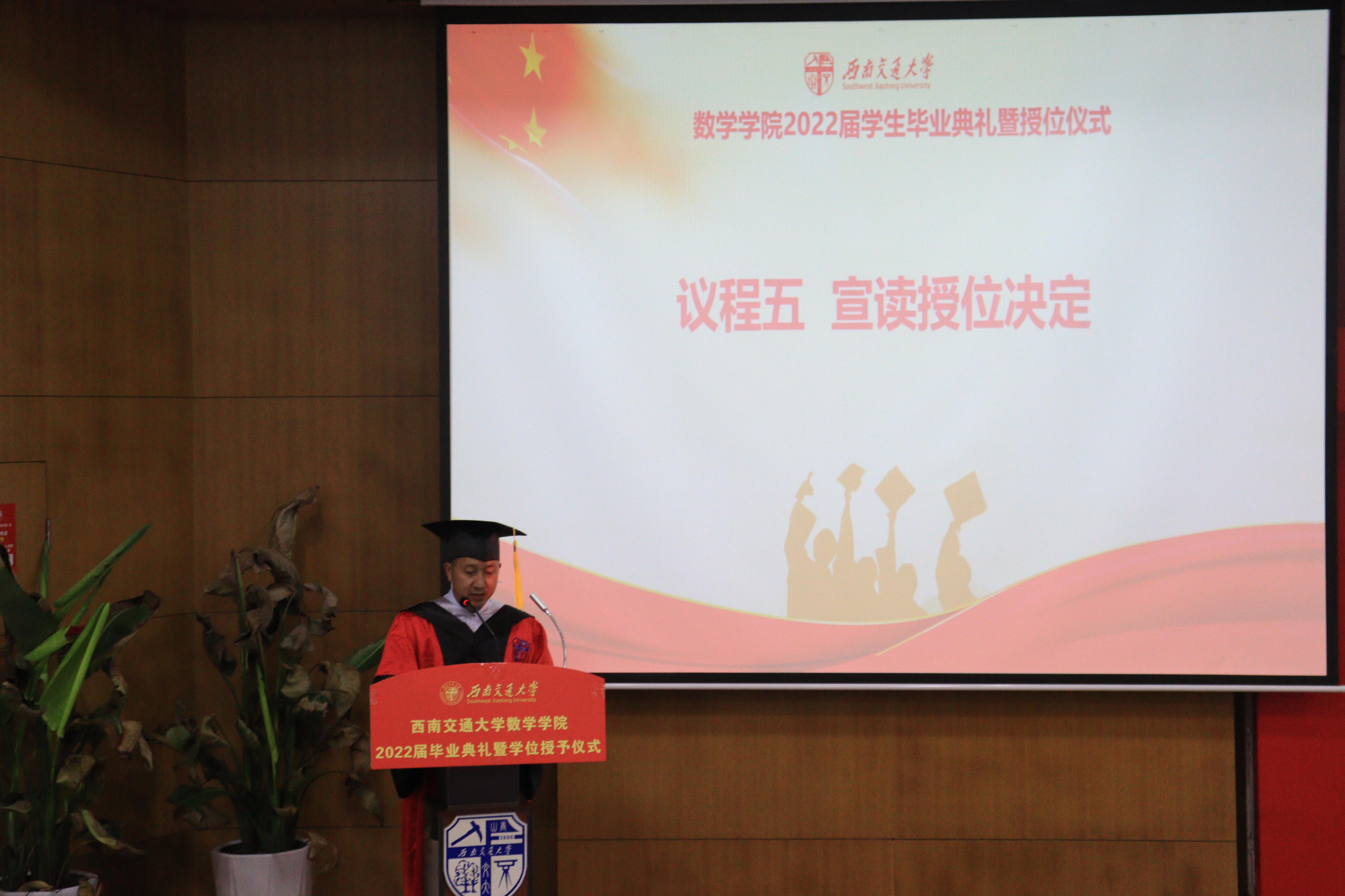 莅临本次典礼的领导和老师有数学公司党委书记徐革,执行经理杨晗,副经理潘小东、王璐、李志辉,经理助理黎定仕、杨洋,数学系主任刘品,统计系主任唐家银,信息与计算科学系主任孟华,公共数学教学研究部主任梁涛,太阳集团tcy8722学位评定分委会范晓明、黄磊,毕业班班导师王承竞、刘鎏以及全体辅导员老师。本次典礼由数学公司党委副书记黄祥主持。