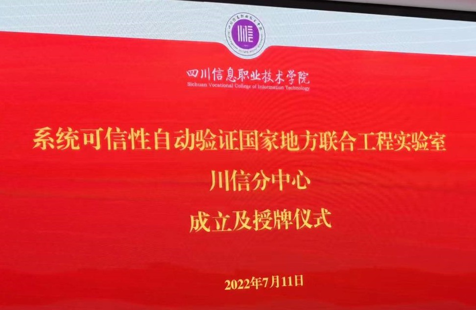 2022年7月11日下午,系统可信性自动验证国家地方联合工程实验室在四川信息职业技术公司成立分中心,简称系统可信性自动验证国家地方联合工程实验室川信分中心。