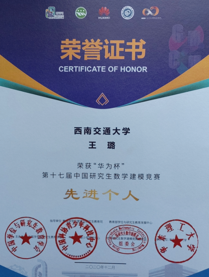 王璐,男,教授,博士生导师。全国老员工数学建模竞赛优秀指导教师,国家级混合式一流课程数学建模负责人,四川省线上一流课程数学建模精讲负责人。自2010年至今指导全国老员工数学建模竞赛共计全国一等奖13项,全国二等奖16项。获得第十七届中国研究生数学建模“先进个人”荣誉称号。
