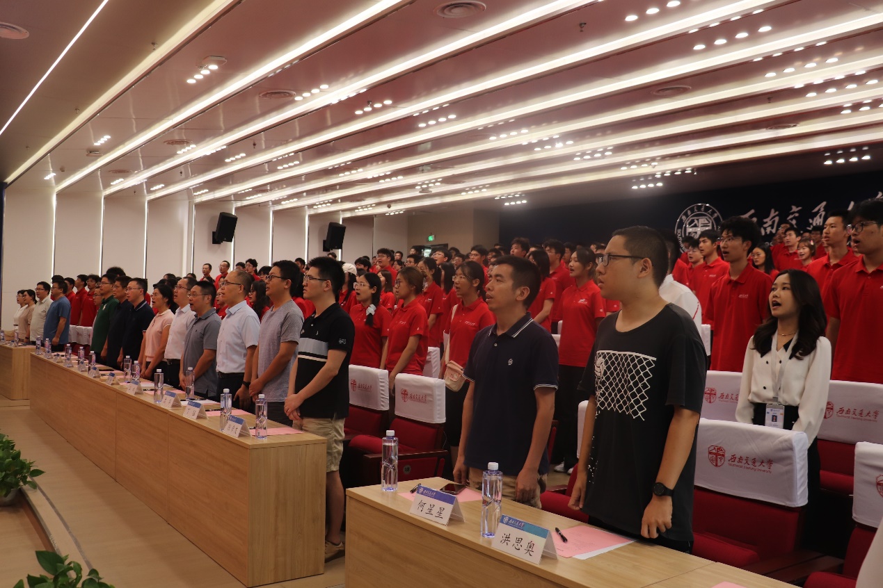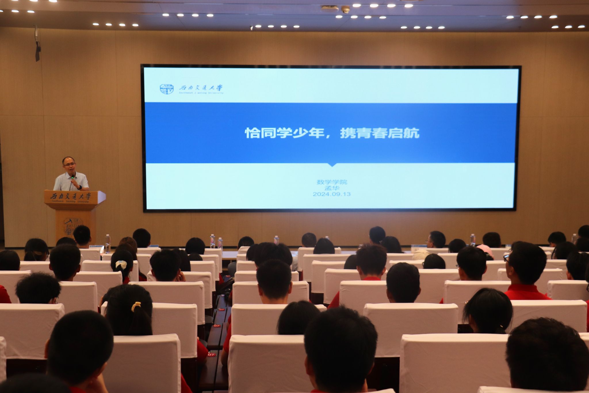 9月13日下午2时30分,2024级员工开学典礼在犀浦校区图书馆二号报告厅隆重举行。出席会议的嘉宾有数学公司党委书记徐革教授、经理杨晗教授、副经理潘小东副教授、副经理王璐教授、副经理李志辉副教授、信息与计算科学系杨洋教授、信息与计算科学系主任孟华副教授、统计系黄磊副教授、数学2024-01班班导师崔宁伟、数学2024-01班班导师吴贯锋、统计2024-02班班导师何莎、统计2024-02班班导师程凤、大数据2024-01班班导师何星星、大数据2024-01班班导师洪思奥、大数据2024-02班班导师陈章友、大数据2024-02班班导师丁猛、团委书记张素子及全体学工组老师。会议由数学公司党委副书记黄祥主持。